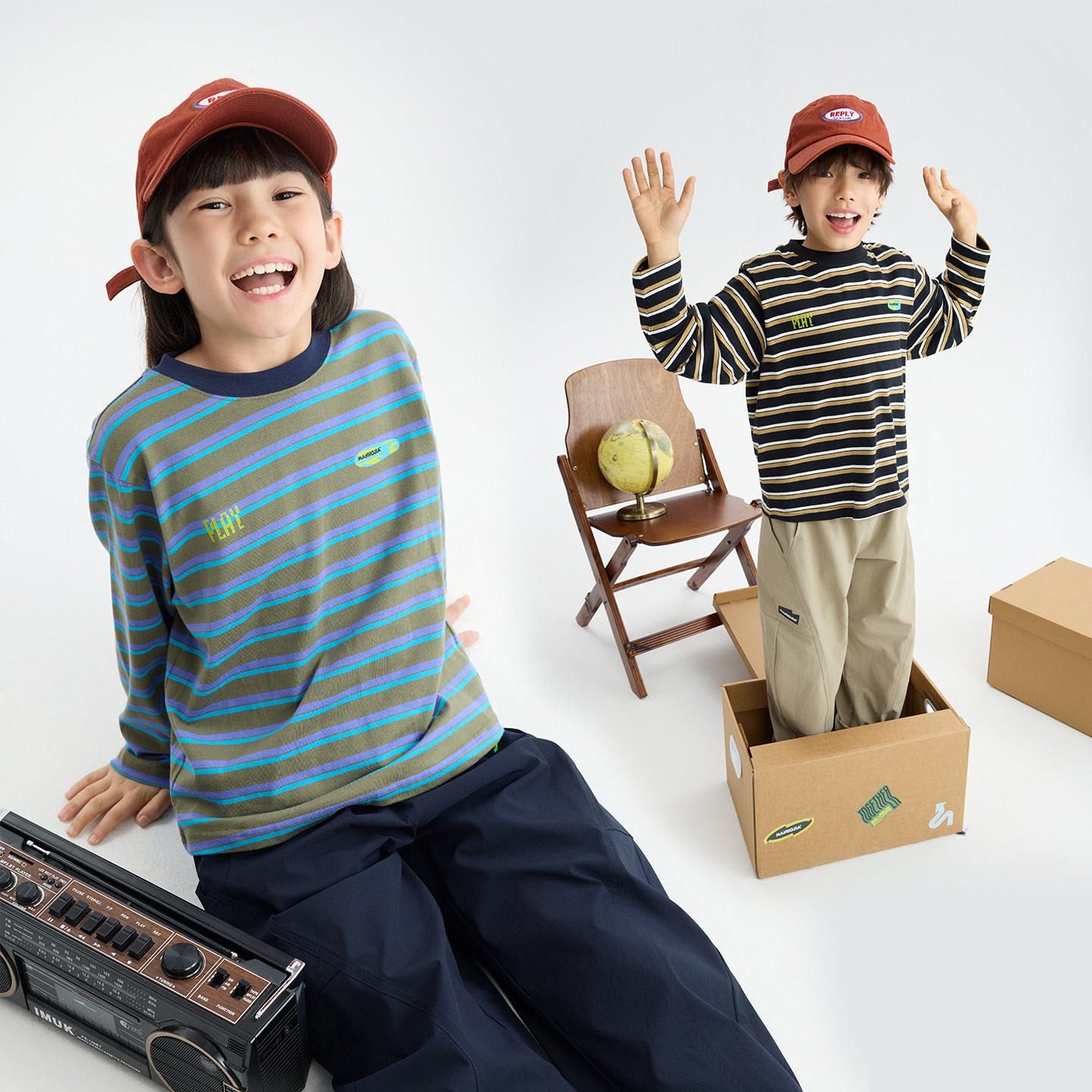 MANHOJIA【好运小马T】儿童长袖新年好事发生小马棉亲子条纹T恤