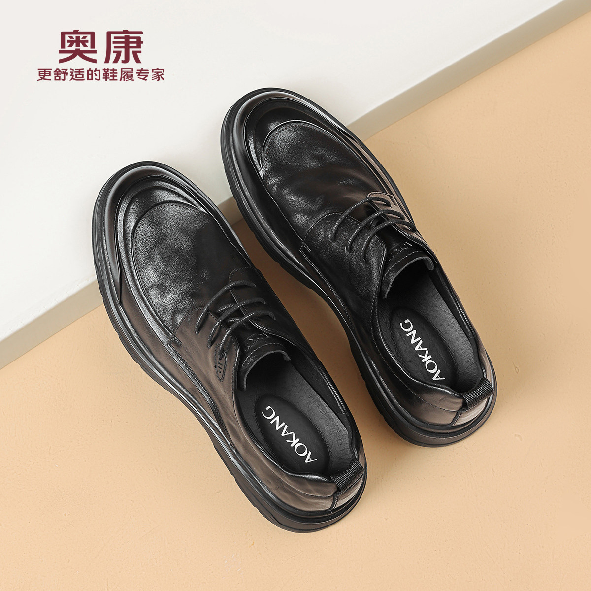 奥康 男鞋秋冬新款手抓纹商务休闲皮鞋真皮软底舒适增高加绒皮鞋N