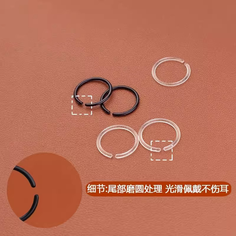 树脂耳圈透明耳环耳洞防堵针耳钉养耳洞隐形女黑色耳骨环睡觉免摘