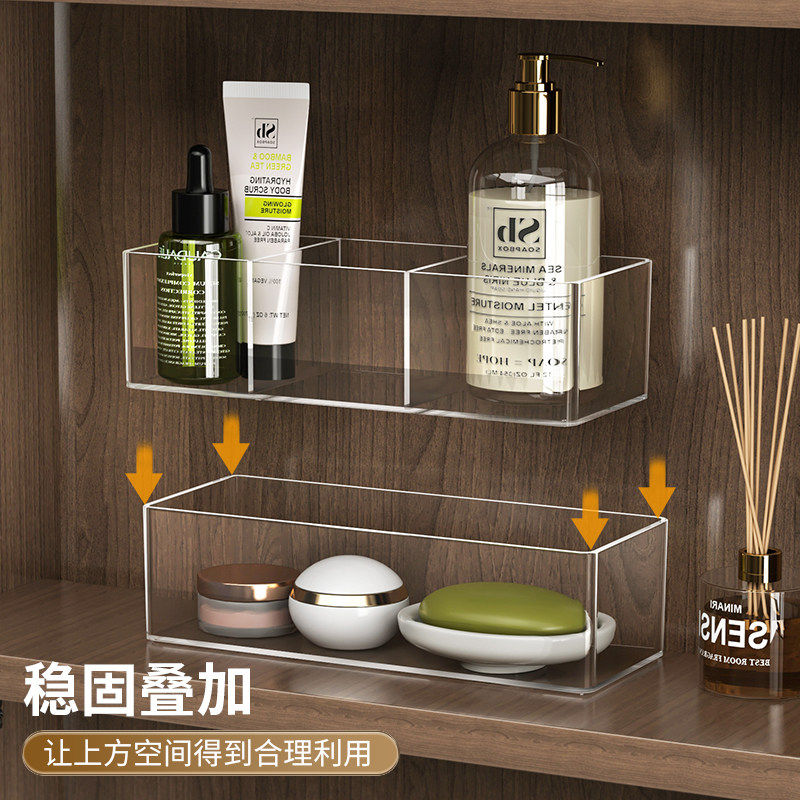 面膜收纳盒亚克力化妆品分格盒透明桌面大容量梳妆台护肤品置物架