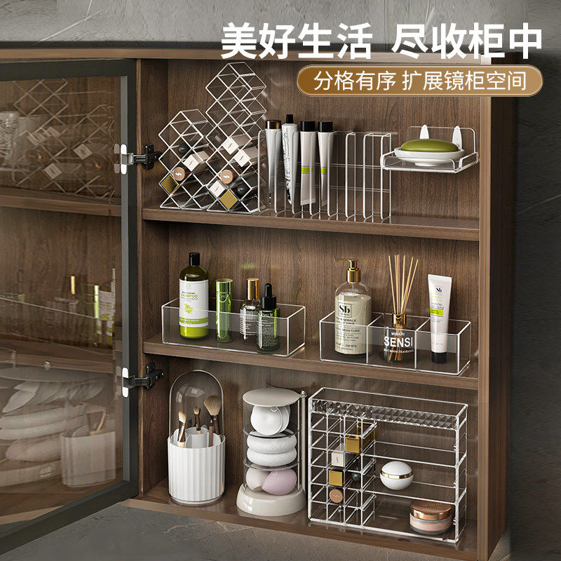 镜柜收纳盒洗手洗漱台化妆品口红卫生间浴室柜分格斜口整理盒子