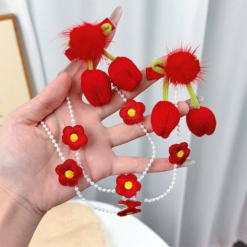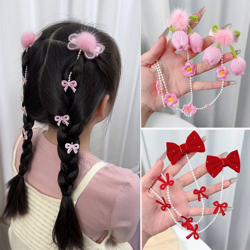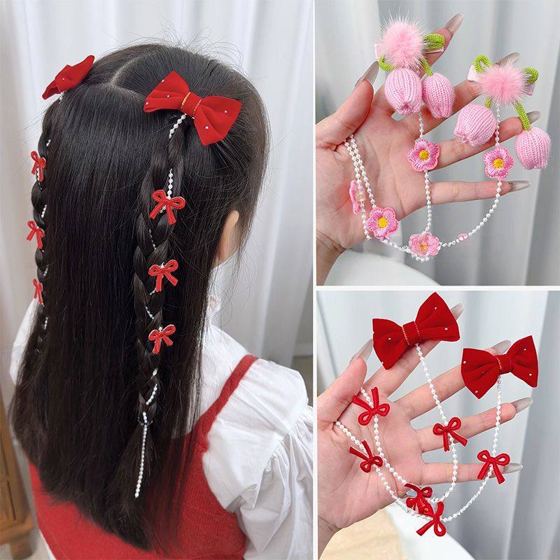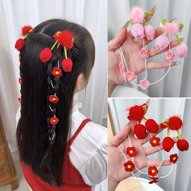 儿童中式郁金香编织花朵编发甜美女童流苏发夹超仙公主头饰发饰