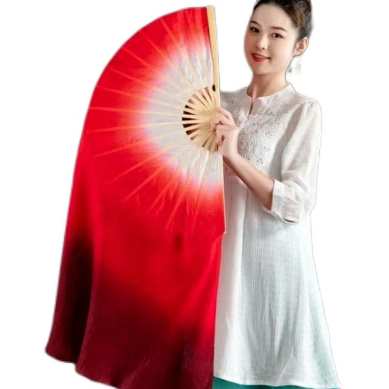 万疆舞蹈扇子仿真丝演出双面深红渐变跳舞广场舞胶州秧歌古典舞扇