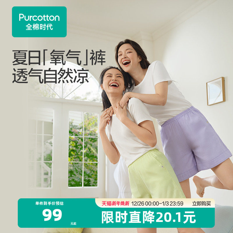 全棉时代男女士双层纱布素色家居短裤25新款春夏情侣五分裤夏装
