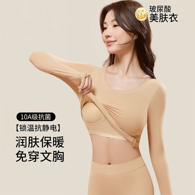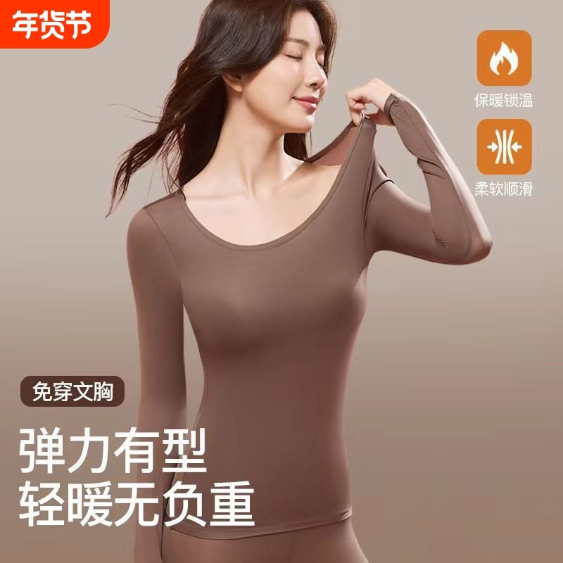 超薄美体发热保暖内衣女士秋衣秋裤套装女无痕隐形修身美肤热能衣