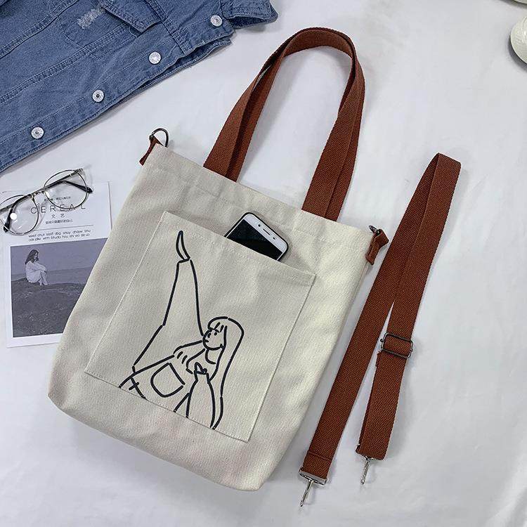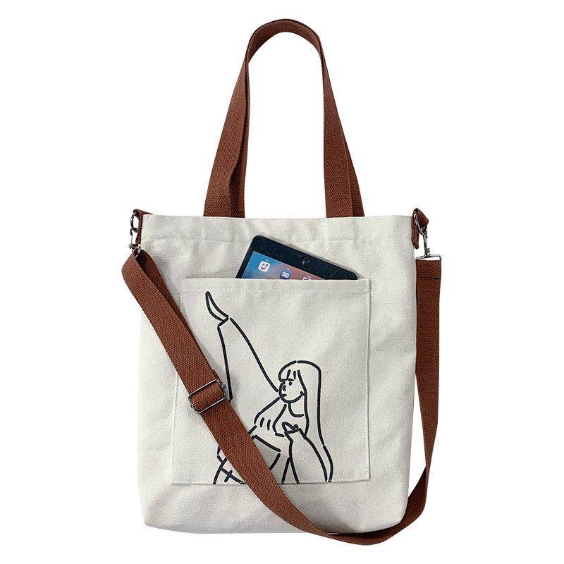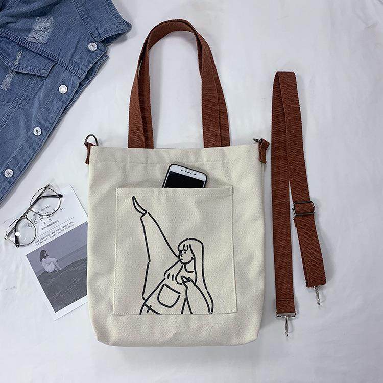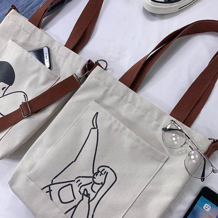 手提两用款帆布袋子女单肩夏日大容量学生购物斜跨卡通补习包定制