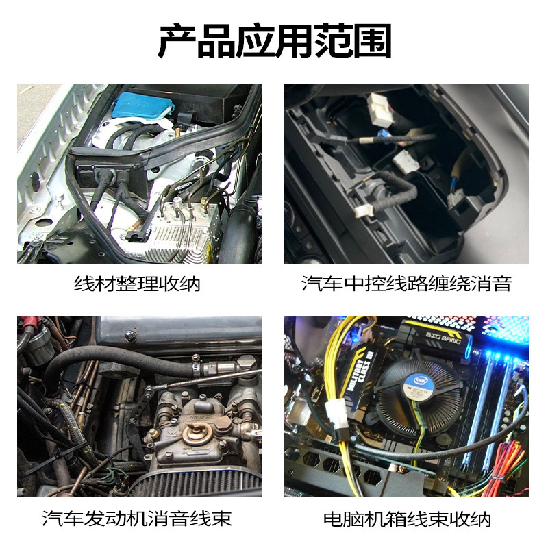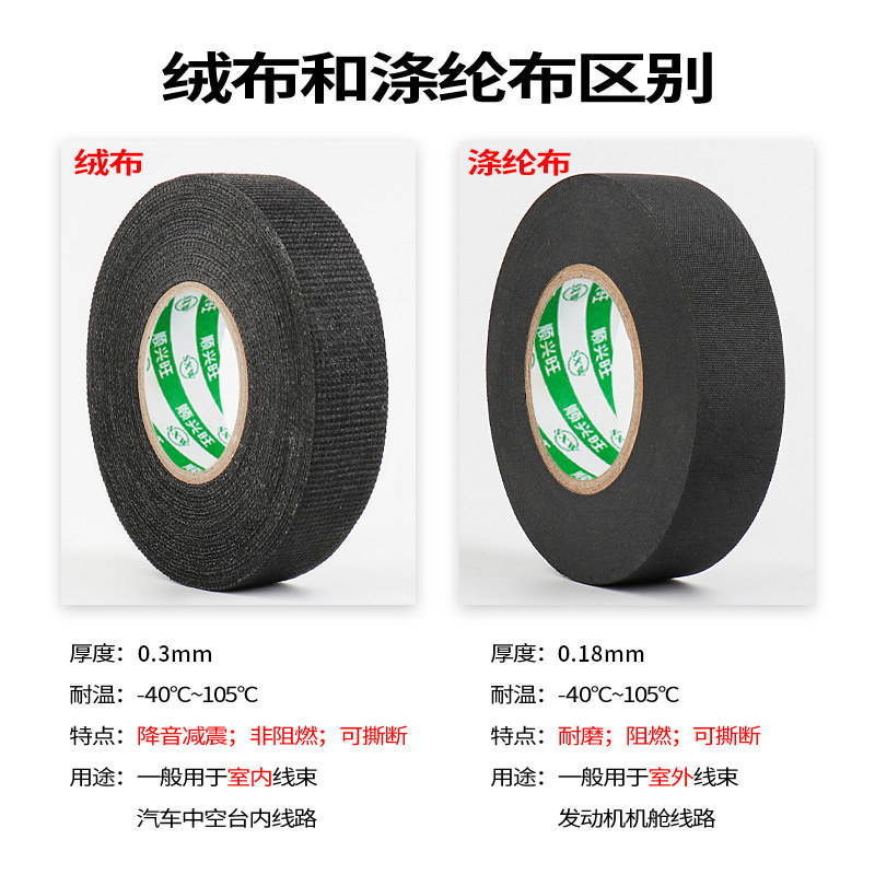 顺兴旺 汽车线束胶带耐高温发动机舱缠绕隔音高粘绒布胶带降噪绝缘消除中控汽车门车体摩擦异响黑色线束胶布