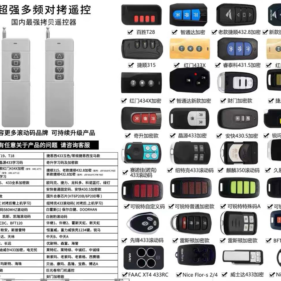 全频对拷电动卷帘门卷闸门车库门道闸伸缩门遥控器电动车电瓶钥匙