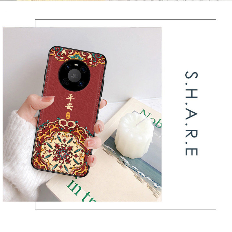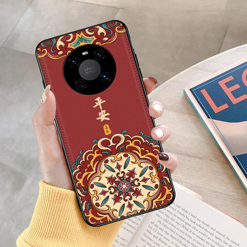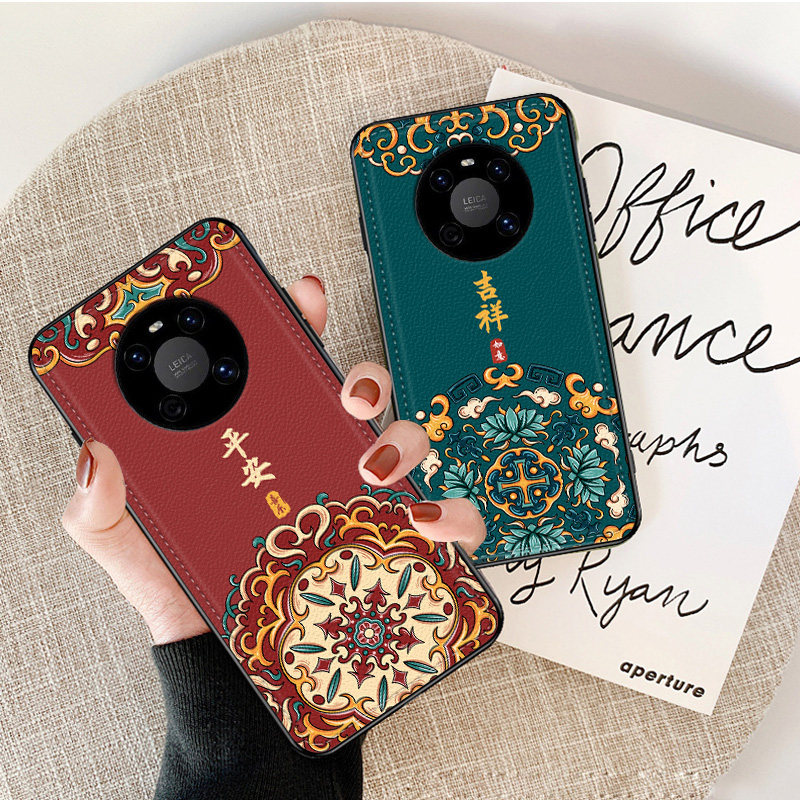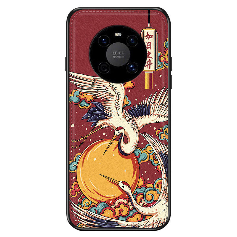 适用于适用于华为mate40pro手机壳皮纹40pro+中国风30pro半包40e原创国潮30e腾龙男5g新款飞鹤20全包防摔软边