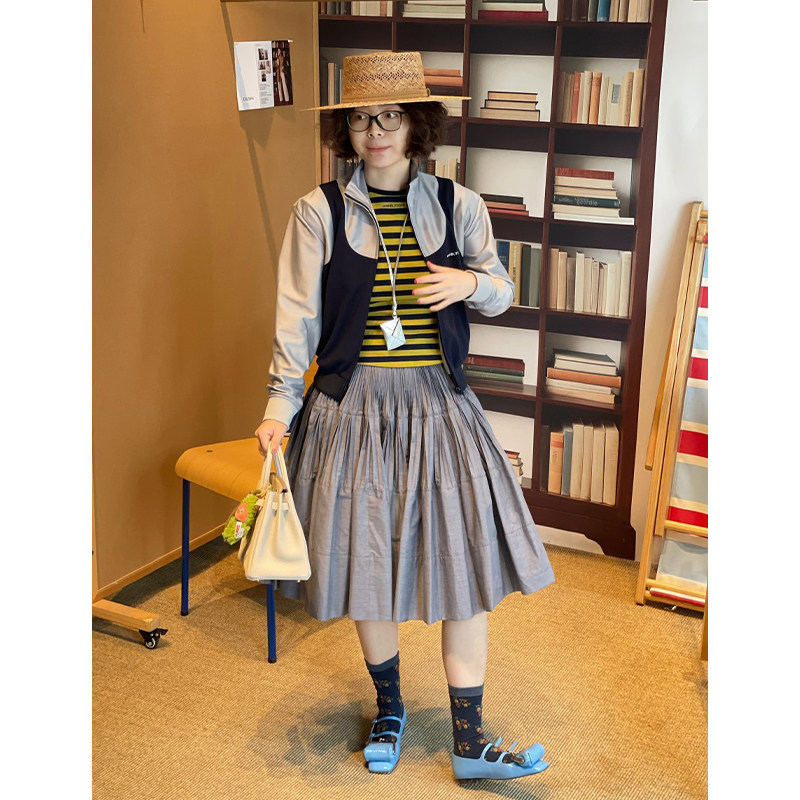 【现货】设计师品牌PUSHBUTTON 26SS 肌理感百褶半身裙