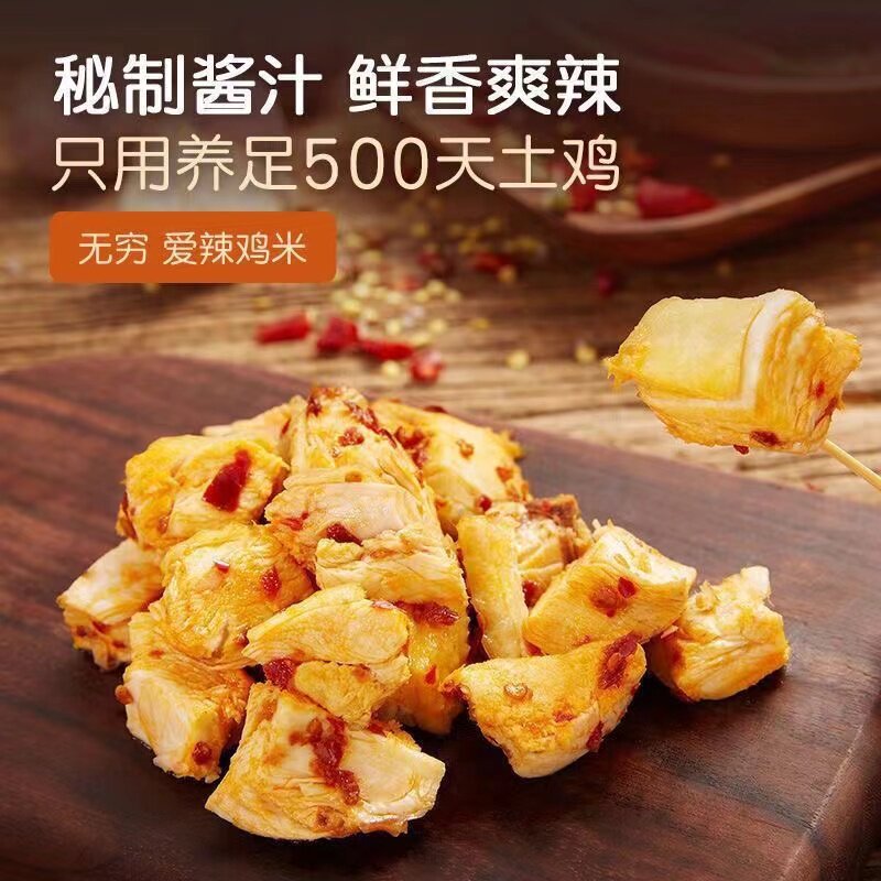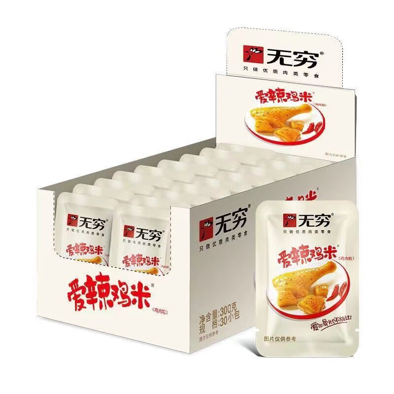 新货无穷爱辣鸡米300g30包鸡腿肉丁广东特产微辣办公室休闲零食品
