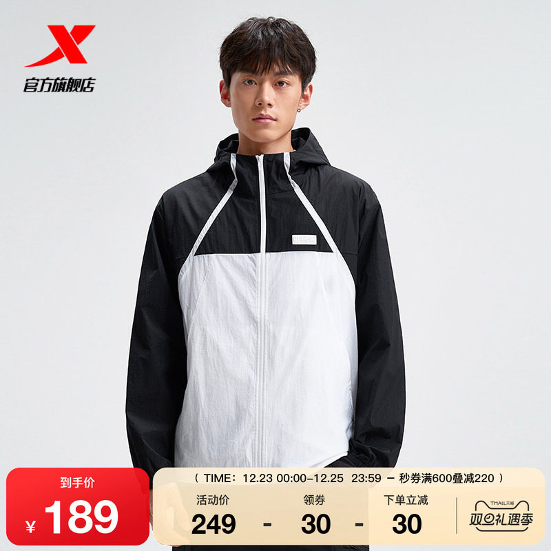 特步风衣男款2025夏季新品连帽上衣拼色工装运动外套975229140219