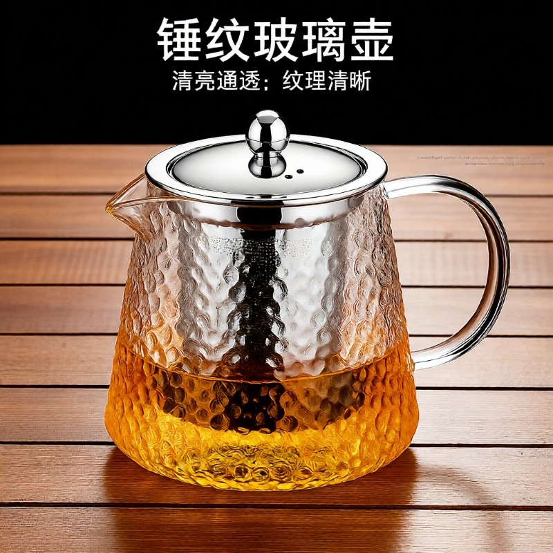 加厚玻璃茶壶锤纹泡茶壶家用不锈钢煮茶壶茶杯花茶壶玻璃壶高硼硅