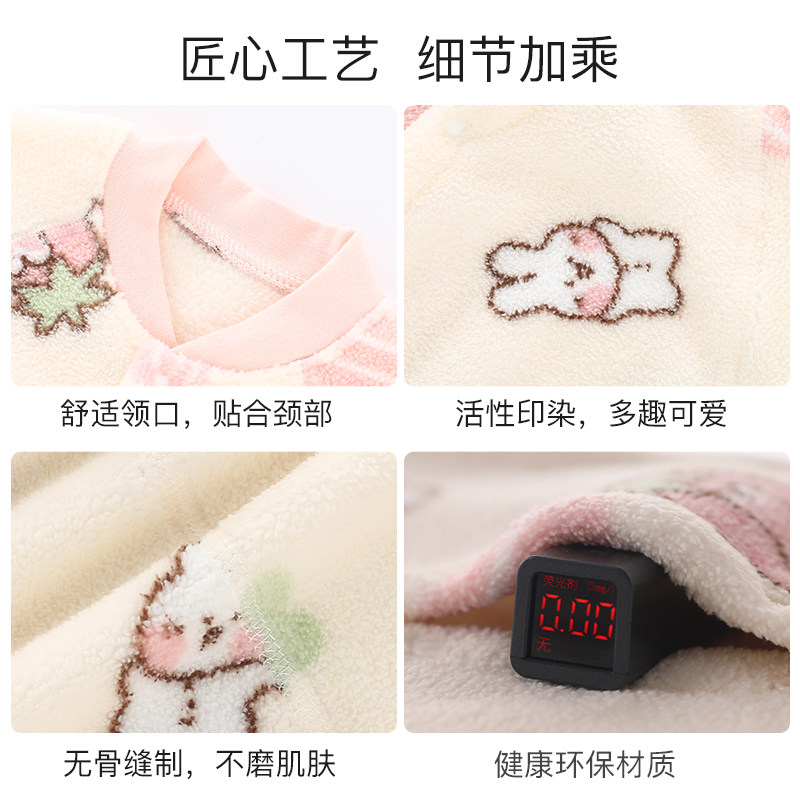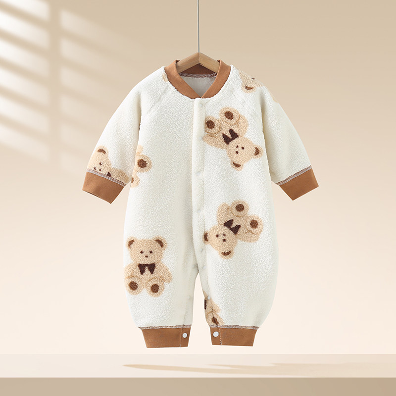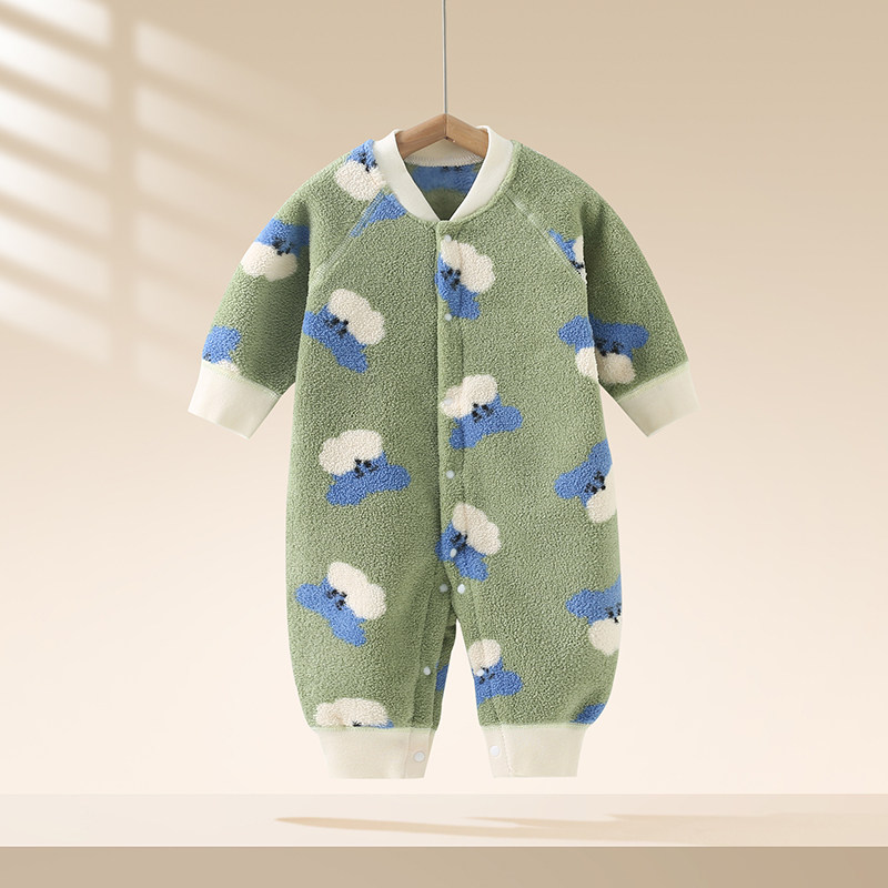 婧麒婴儿儿衣服秋冬季保暖绒宝宝对开连体衣居家服连体爬爬服睡衣