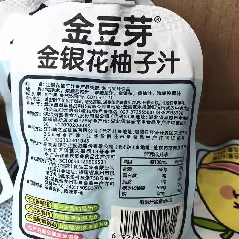 金银花柚子汁柚子茶便携小袋包装儿童成人下火植物饮料果汁