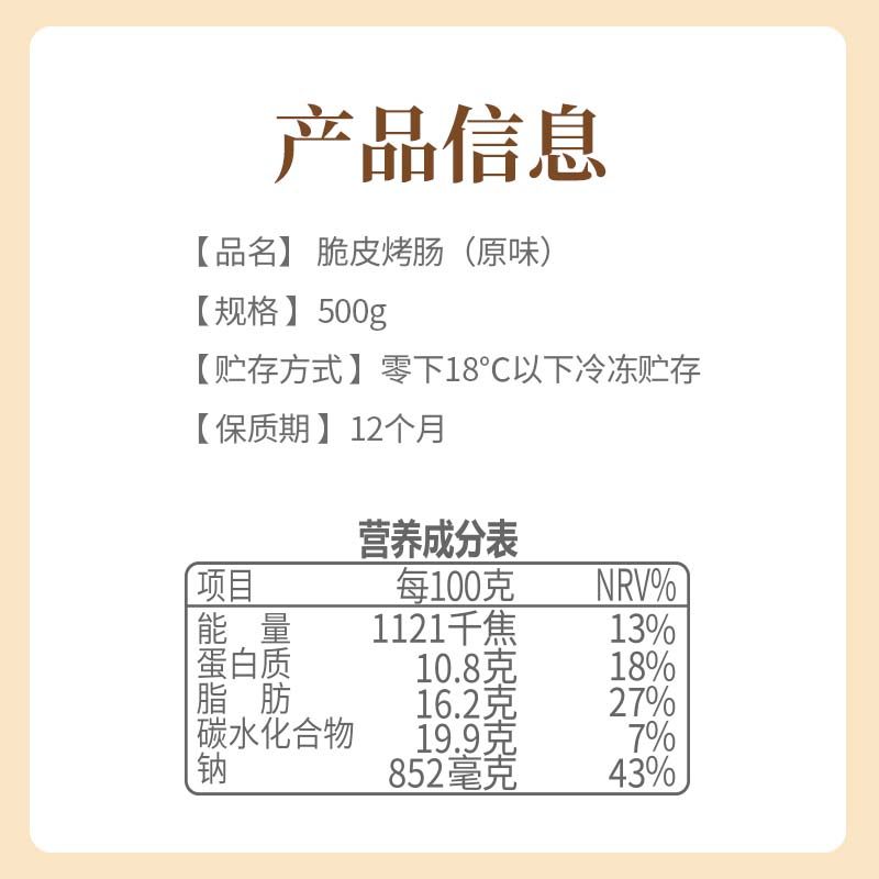 皇家小虎火山石脆皮烤肠纯肉香肠热狗空气炸锅食材地道肉肠黑胡椒