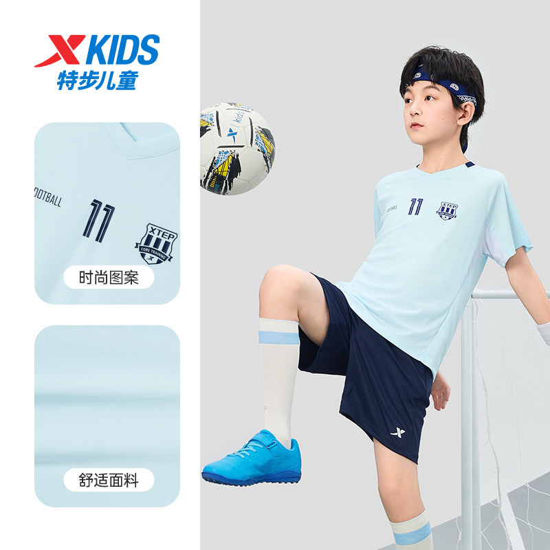 特步童装儿童套装夏季新款男童运动两件套女童足球短袖短裤运动服
