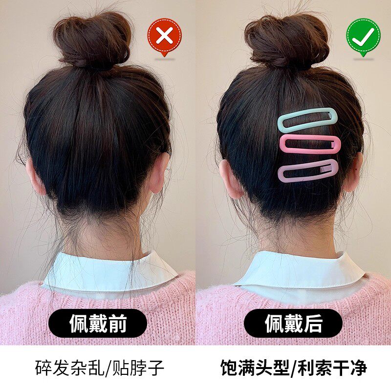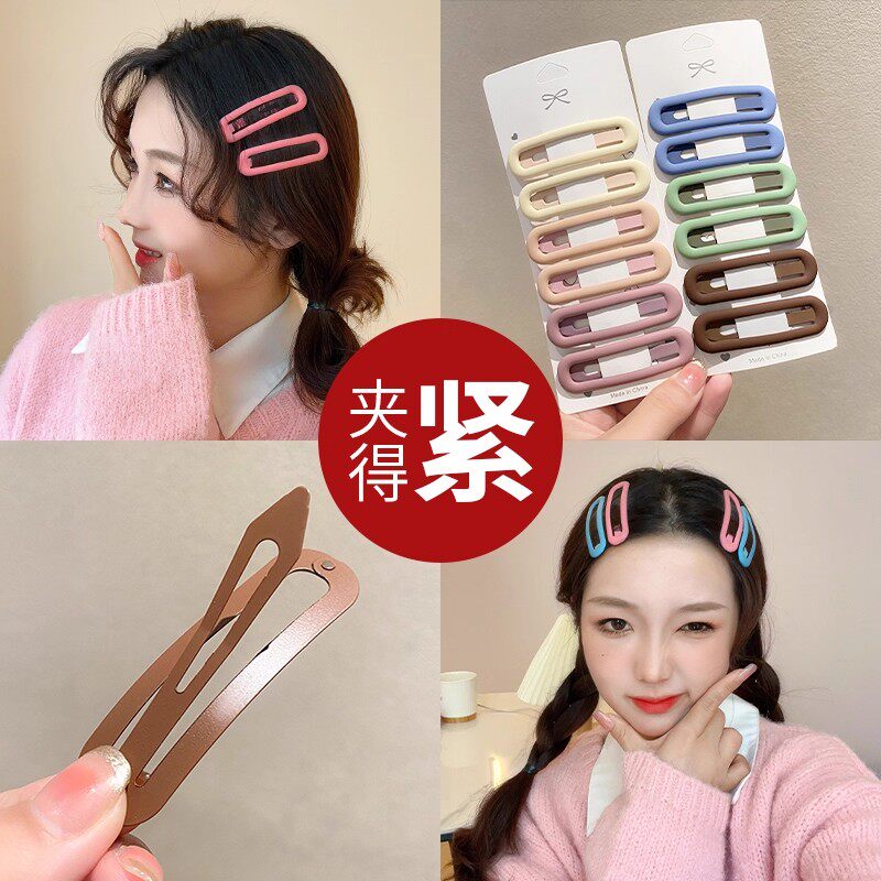 少女小金属刘海碎发一字鸭嘴造型侧边美妆发夹女发卡黑色夹子发饰