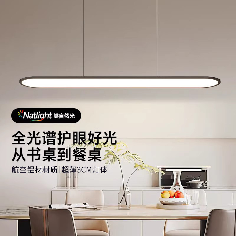 长虹全光谱餐厅灯简约现代一字长条LED护眼极简吧台办公餐桌吊灯