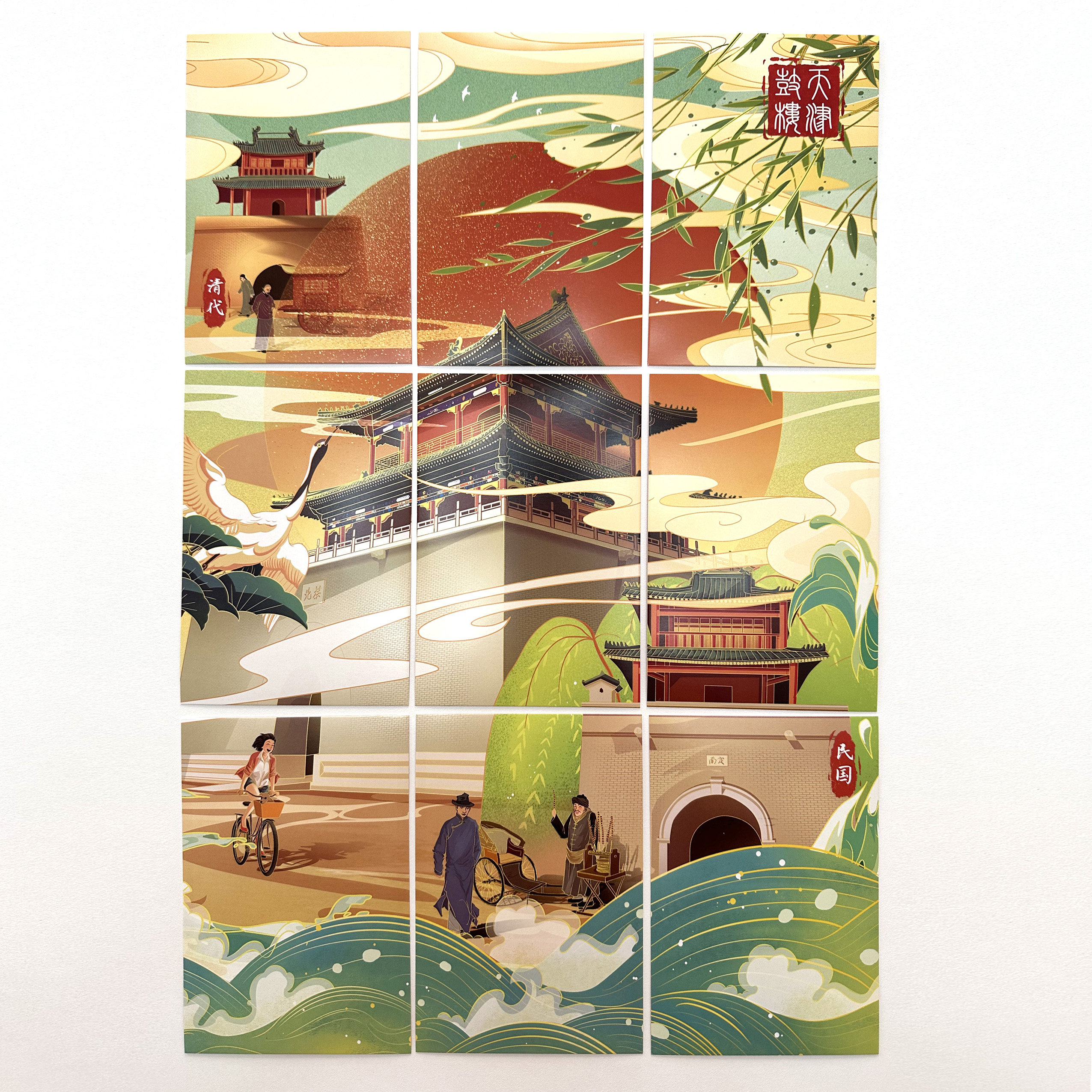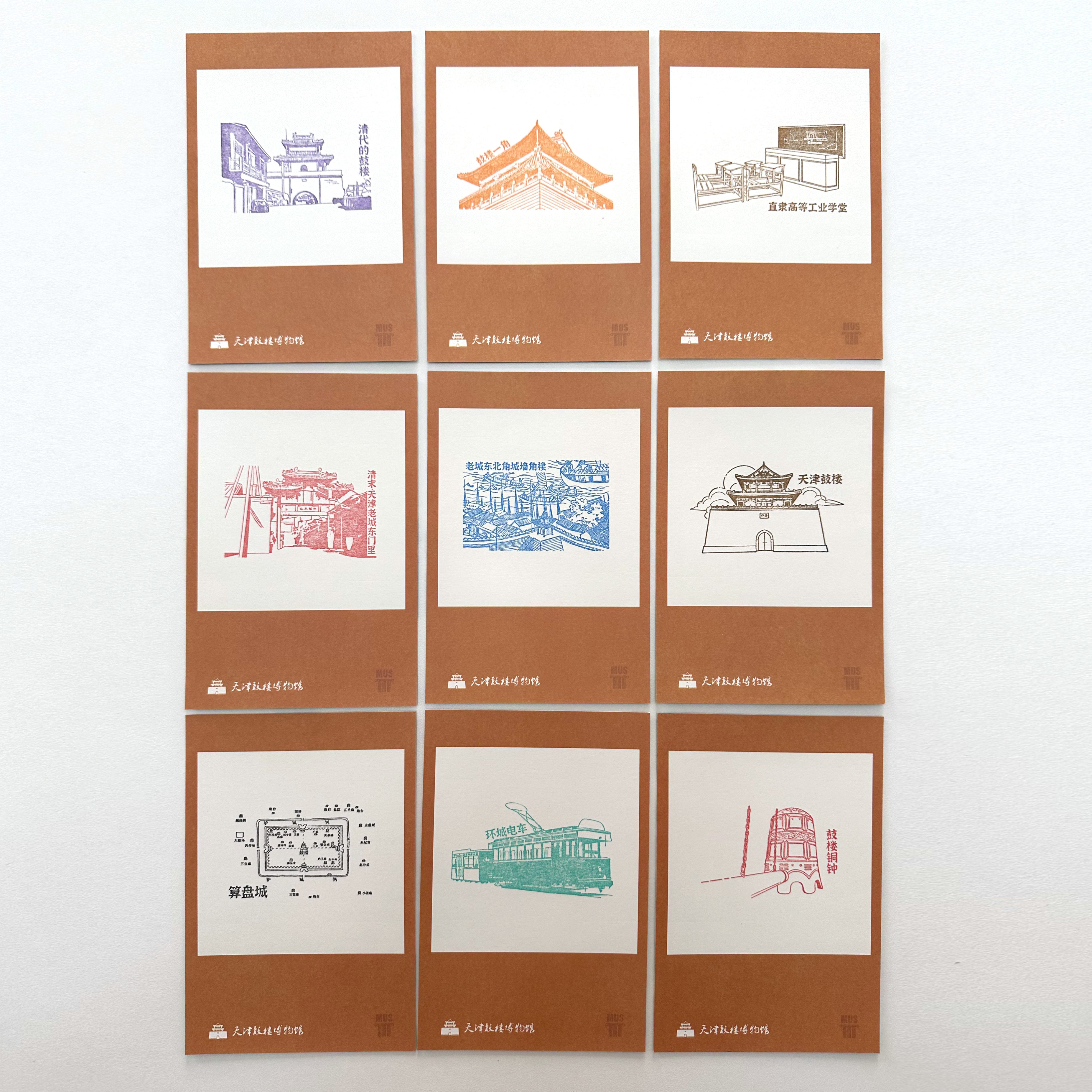 天津鼓楼九宫格拼图印章盖章集章卡套盒MUS纪念明信片文创收藏