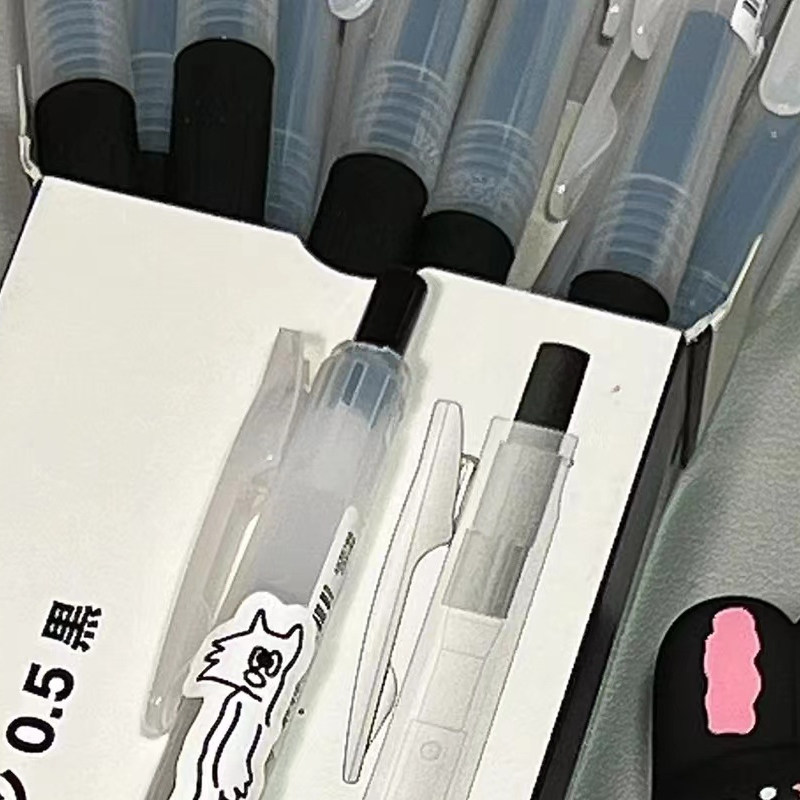 晴耕雨读刷题笔专用高颜值速干按动中性笔ins黑笔圆珠笔ST笔学生用考试笔顺滑0.5笔芯黑色水性签字笔水笔碳素