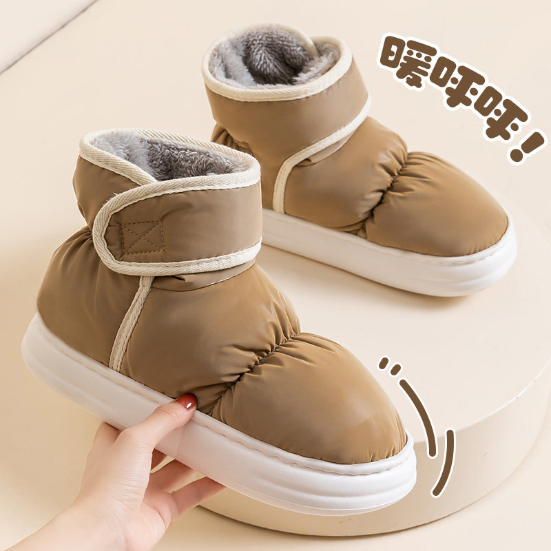 防水雪地靴女款冬季2025新款加绒加厚底情侣外穿保暖包跟棉拖鞋女