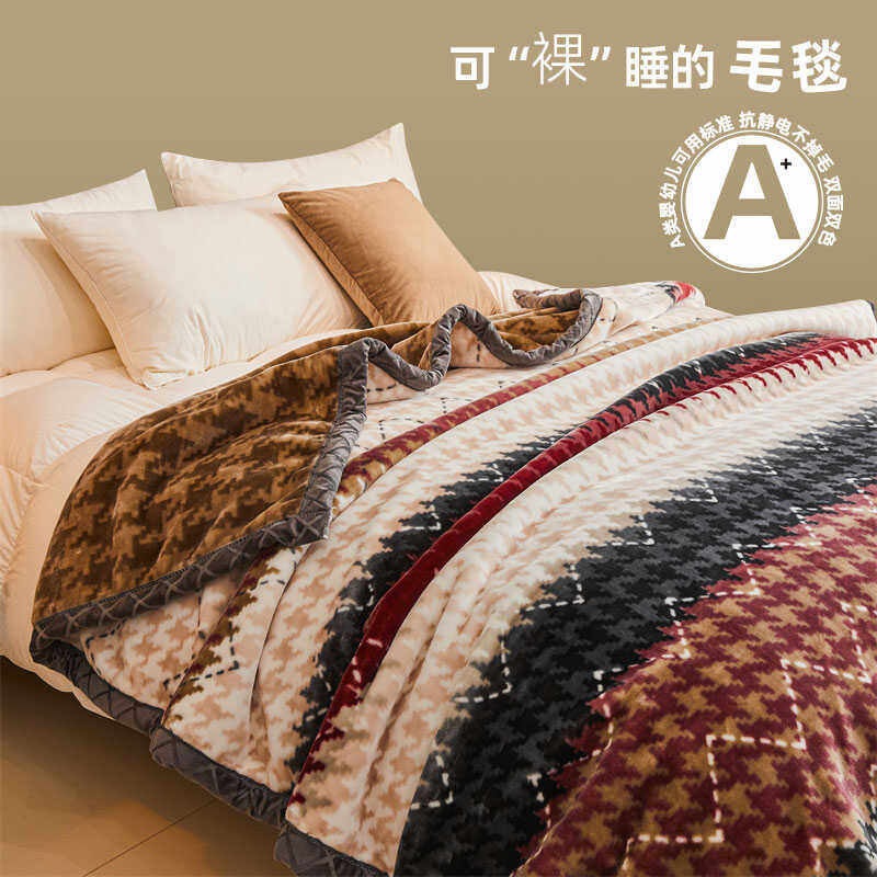 升级拉舍尔双层加厚大毛毯秋冬单双人休闲办公旅行盖毯绒床单A类