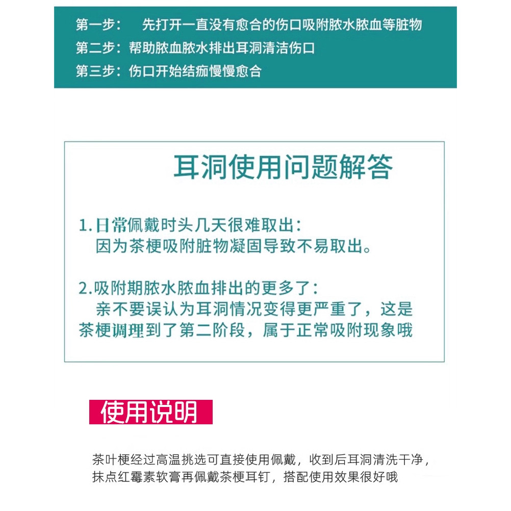 茶叶梗养耳洞耳棒耳钉女防发炎耳棍男防堵针茶叶棍学生隐形耳饰品