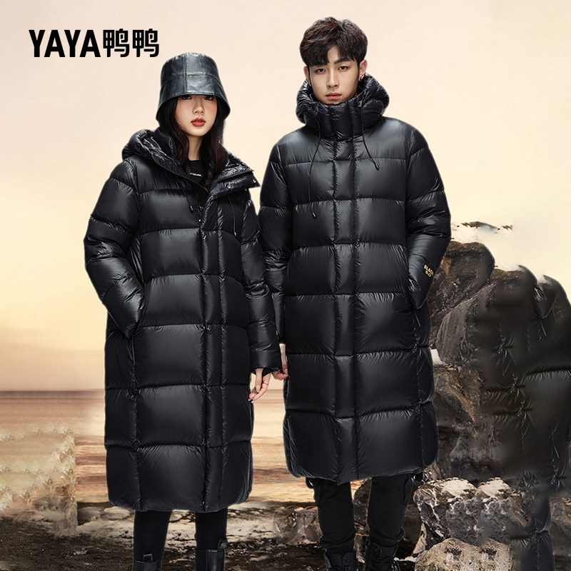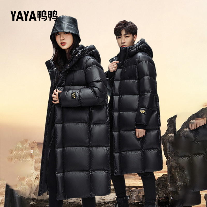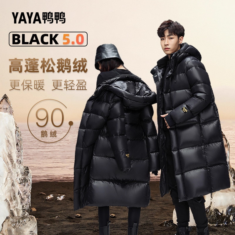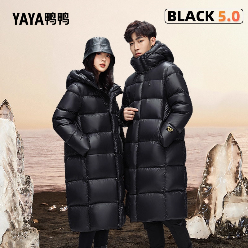 鸭鸭羽绒服男女同款2025秋冬新品中长款连帽潮流加厚黑金鹅绒外套