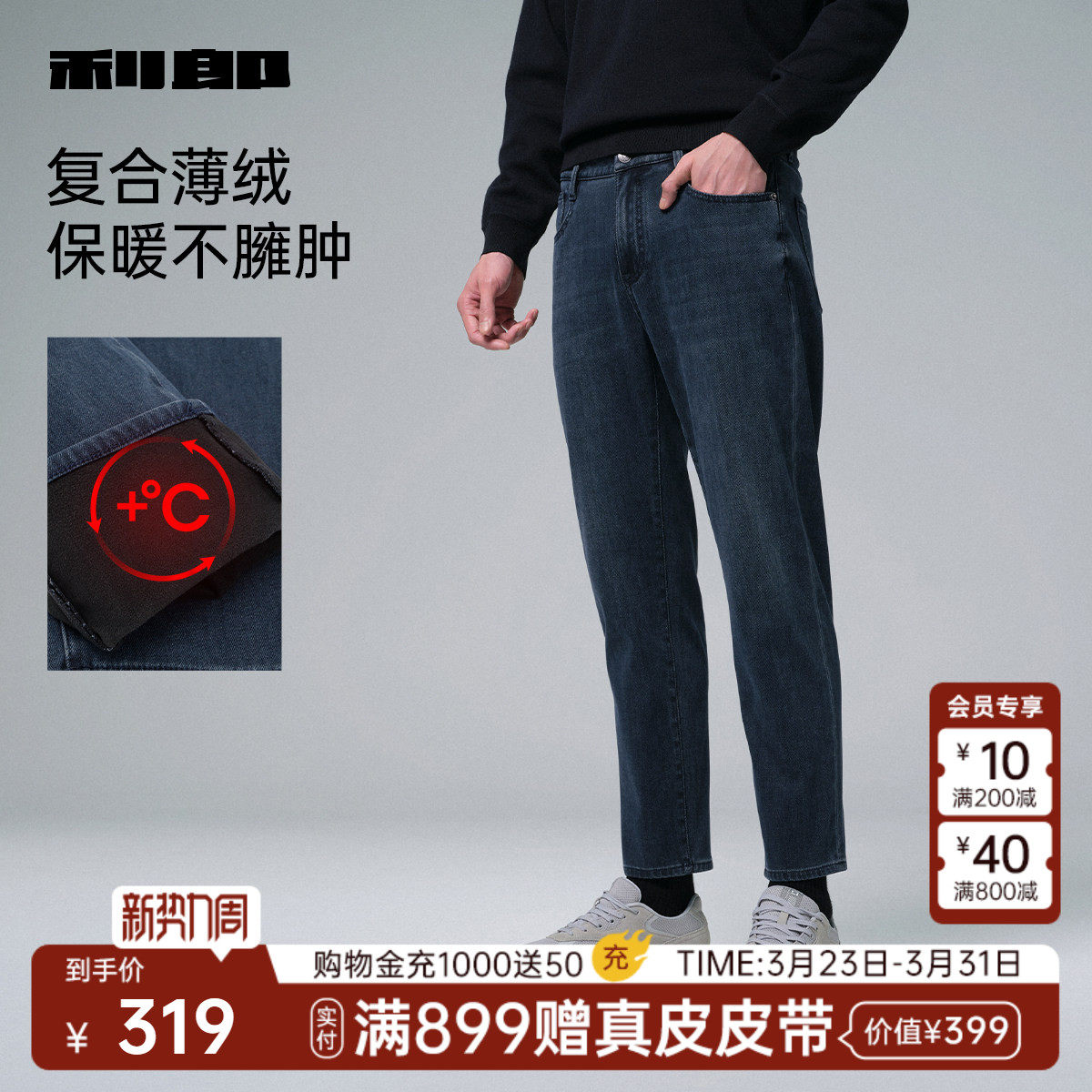 【被子牛仔/莱赛尔/四面弹】利郎官方牛仔裤男25休闲男装保暖男裤