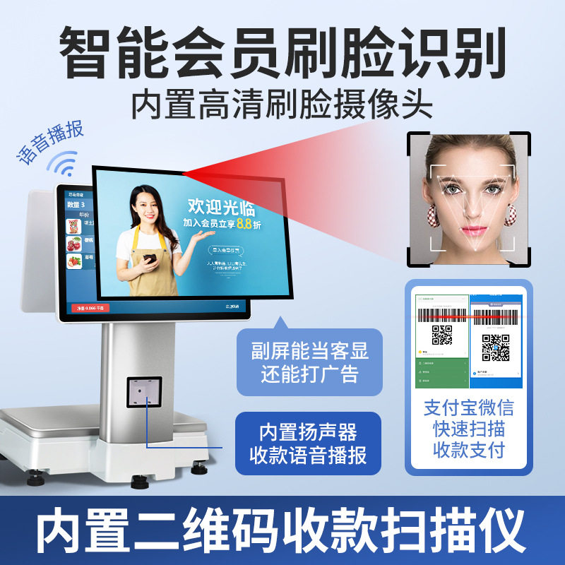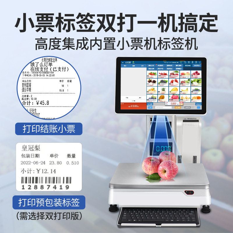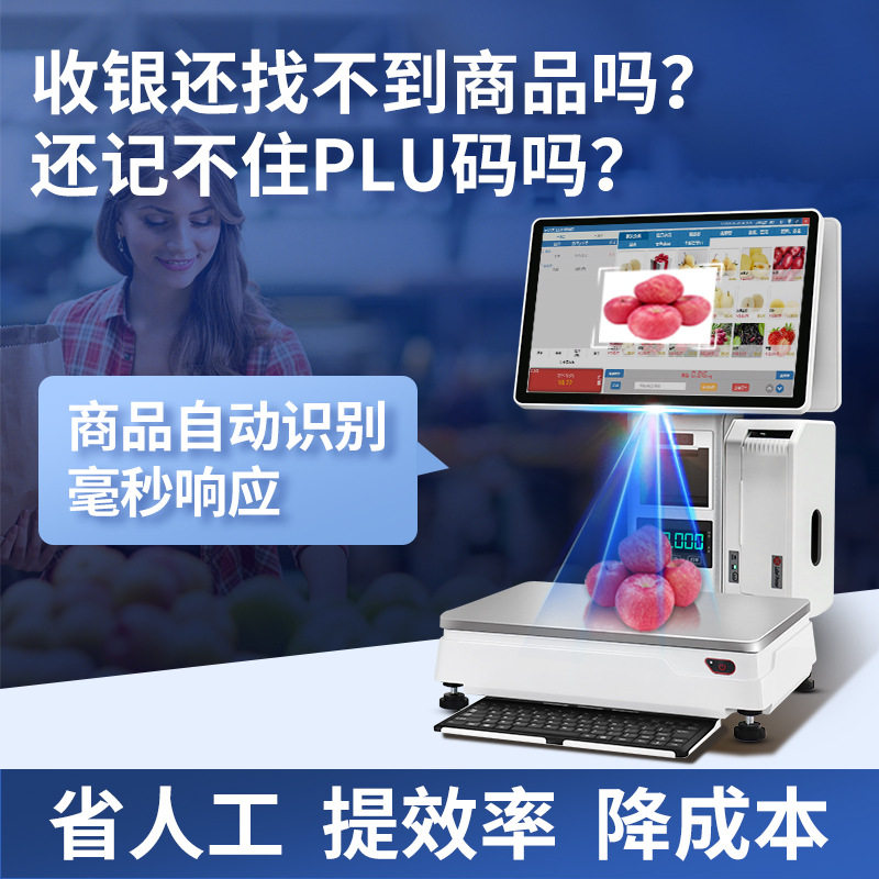 水果店称重Ai识别秤收银机一体机生鲜蔬菜适用单店连锁门店收银系
