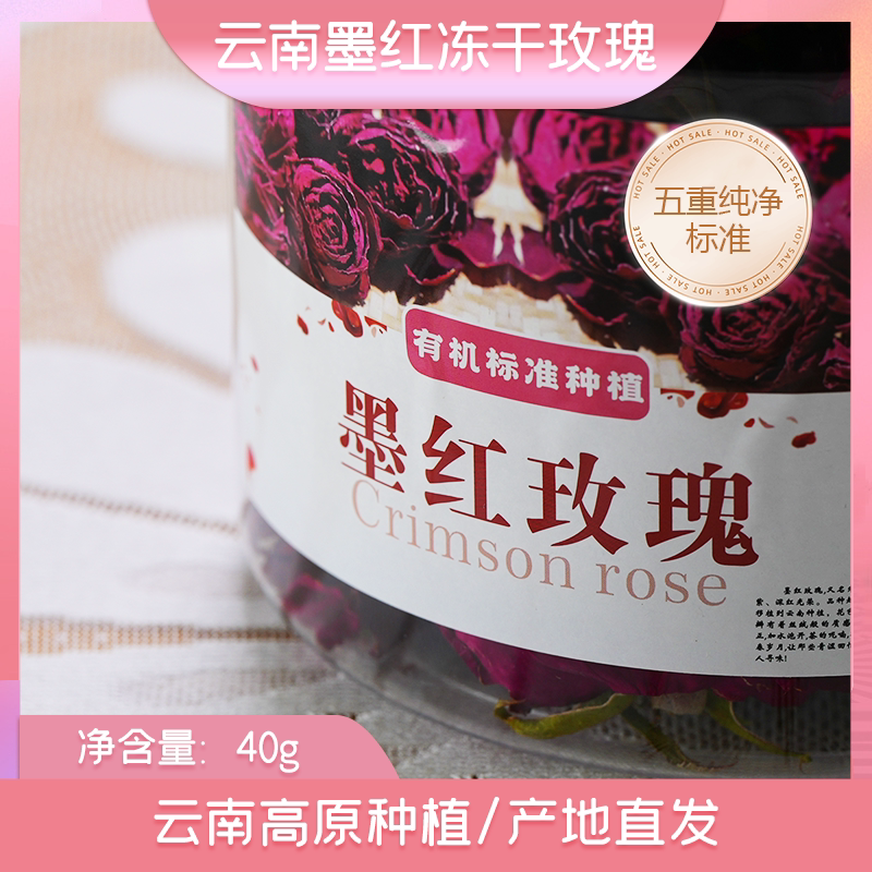 玫瑰花茶冻干40g罐装云南直发墨红玫瑰无熏硫新货花茶饮用花青素