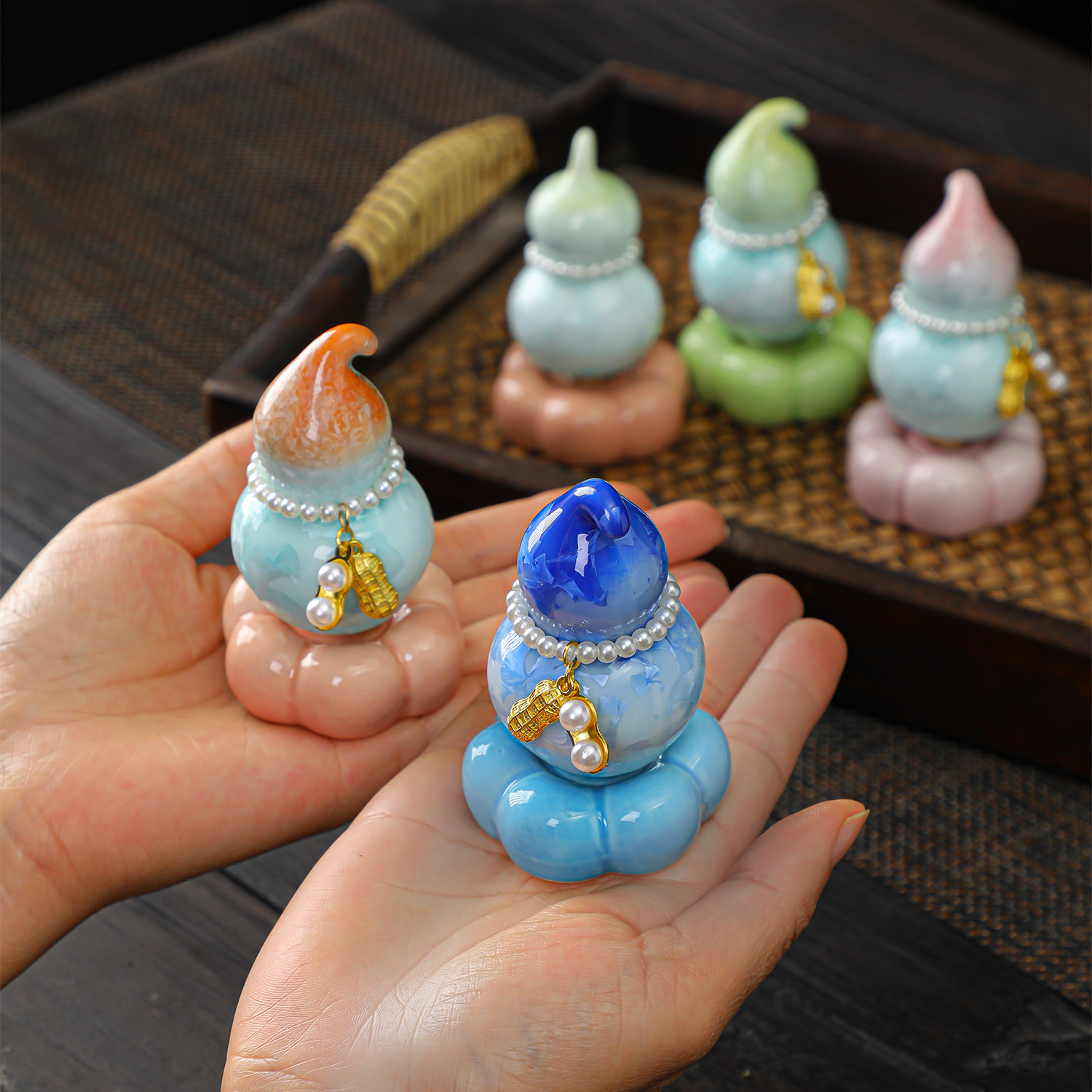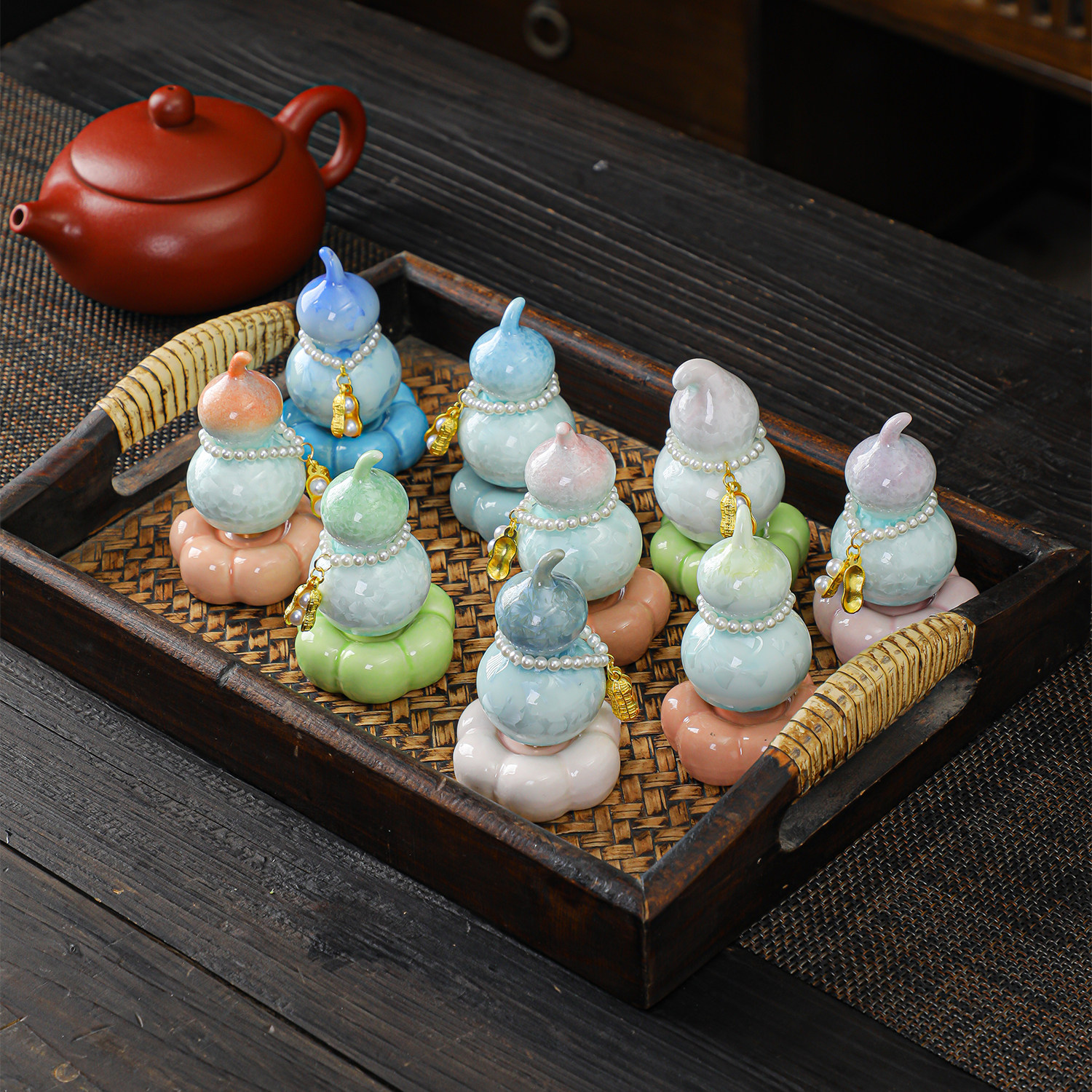 景德镇转转摆件葫芦结晶釉地摊可旋转葫芦陶瓷汽车小摆件全瓷车载