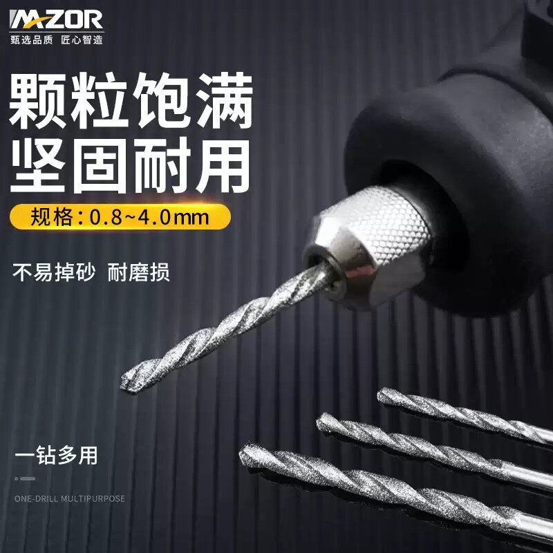 金刚砂麻花钻头翡翠蜜蜡玉石料打孔针瓷砖空鼓修复电磨机钻孔工具