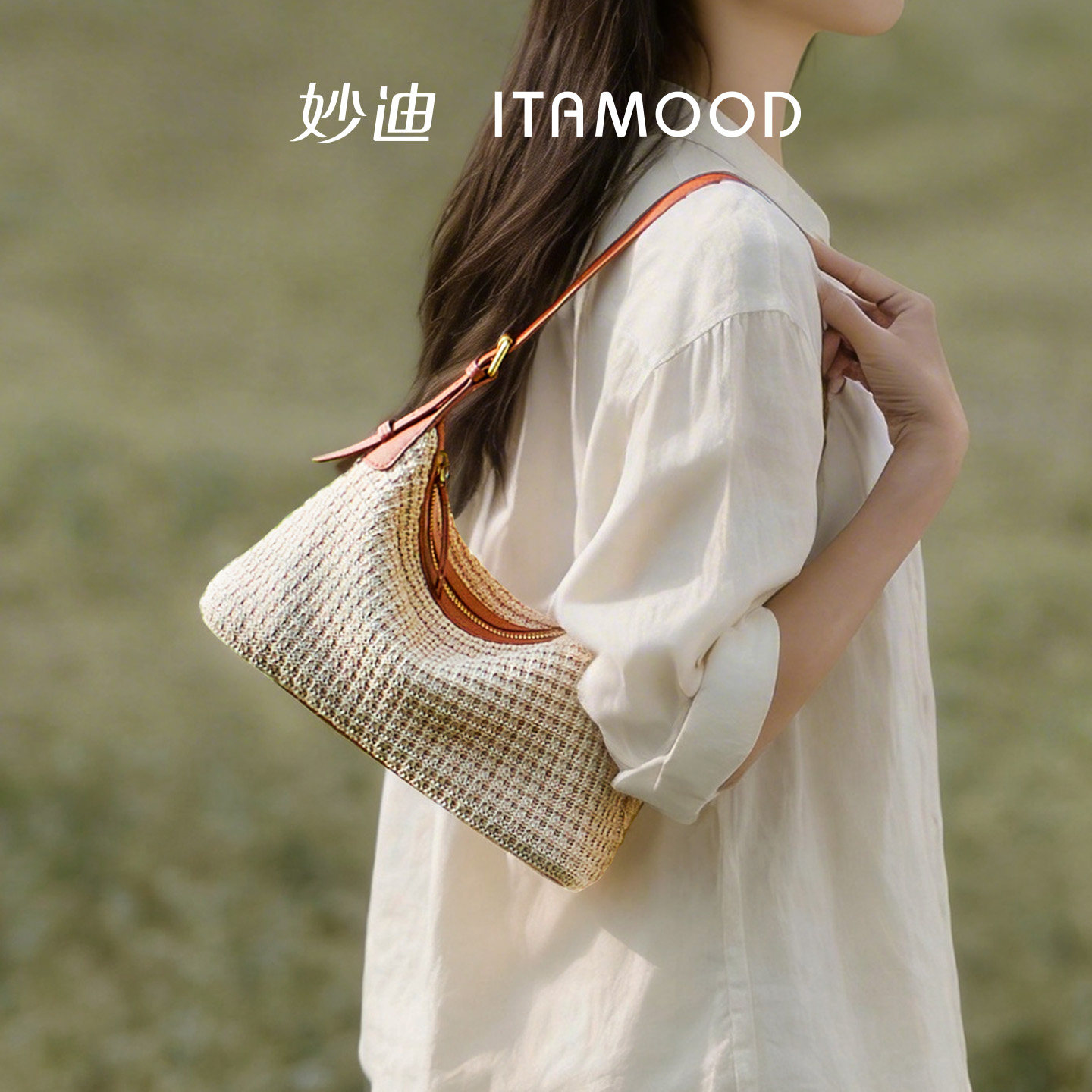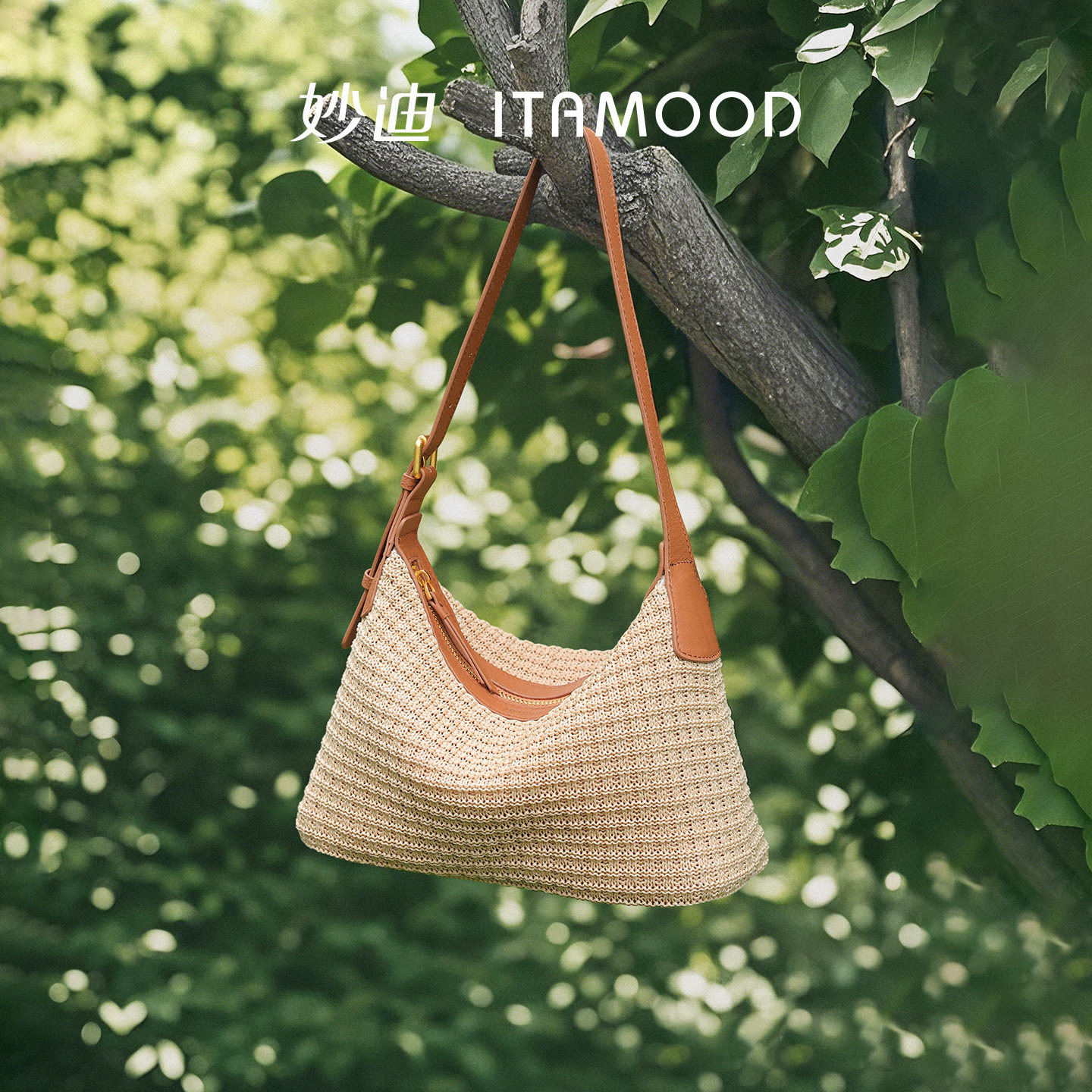 妙迪草编编织包新款女士度假风海边沙滩包慵懒感hobo手拎斜挎包包