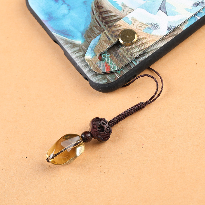 天然黄水晶手机链挂件包包饰品不规则随形原石男女款复古小吊坠