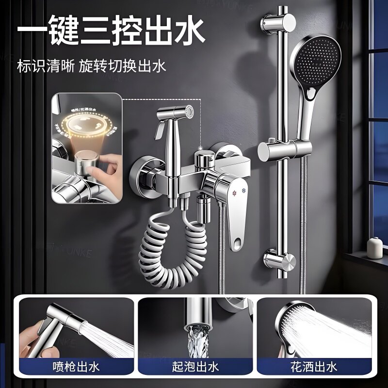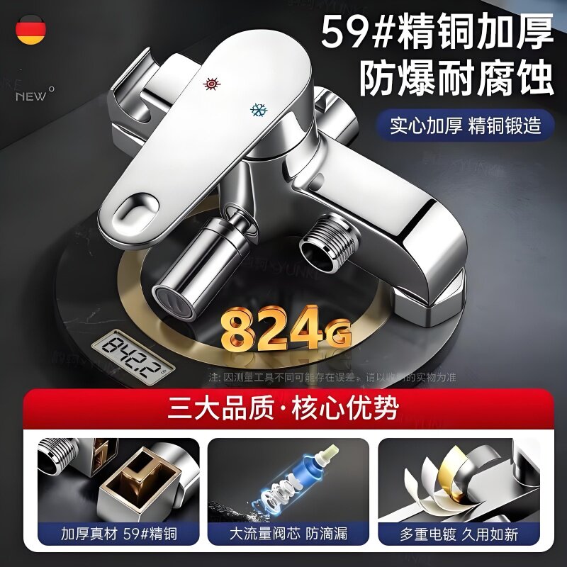 精铜无顶喷淋浴花洒套装家用卫生间分体式置物浴室沐浴全套一整套
