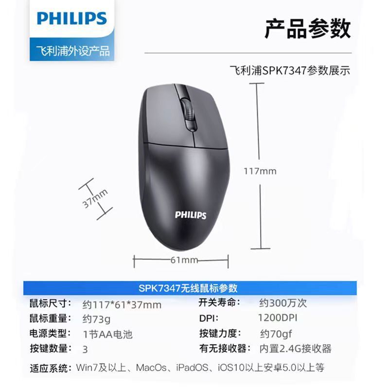 飞利浦SPK7347无线省电鼠标 笔记本台式电脑商务办公通用2.4G鼠标