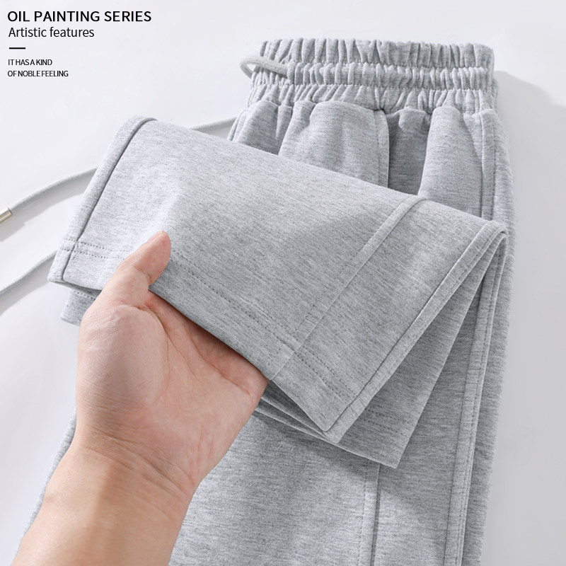 灰色运动裤女小个子2026春季松紧腰运动卫裤高腰垂感阔腿裤束脚裤