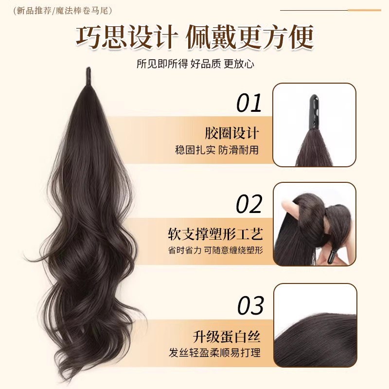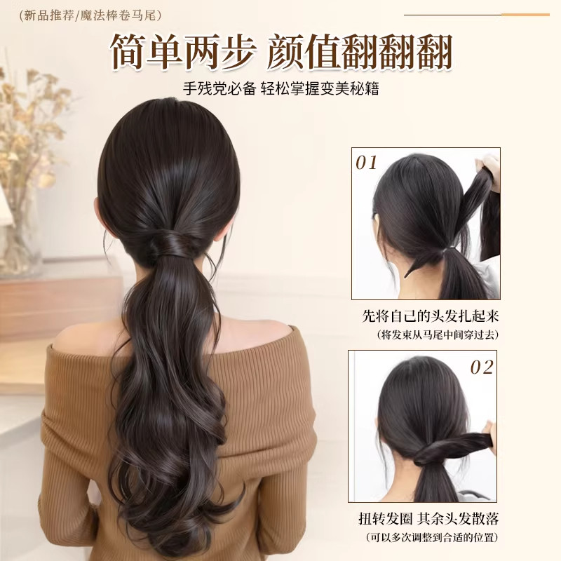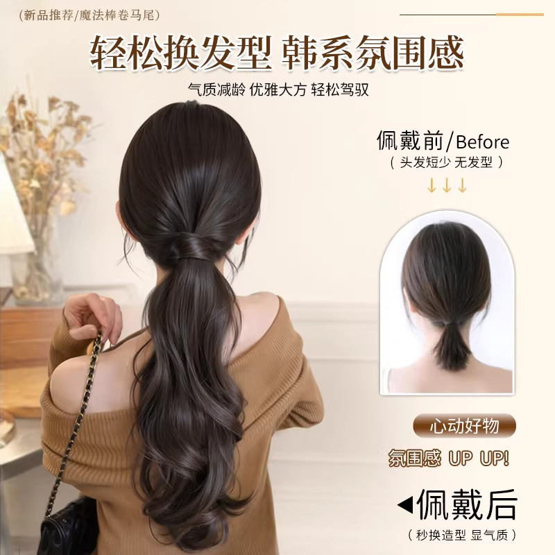 马尾假发女魔法棒卷发大波浪缠绕式温柔低马尾自然增发量假发马尾