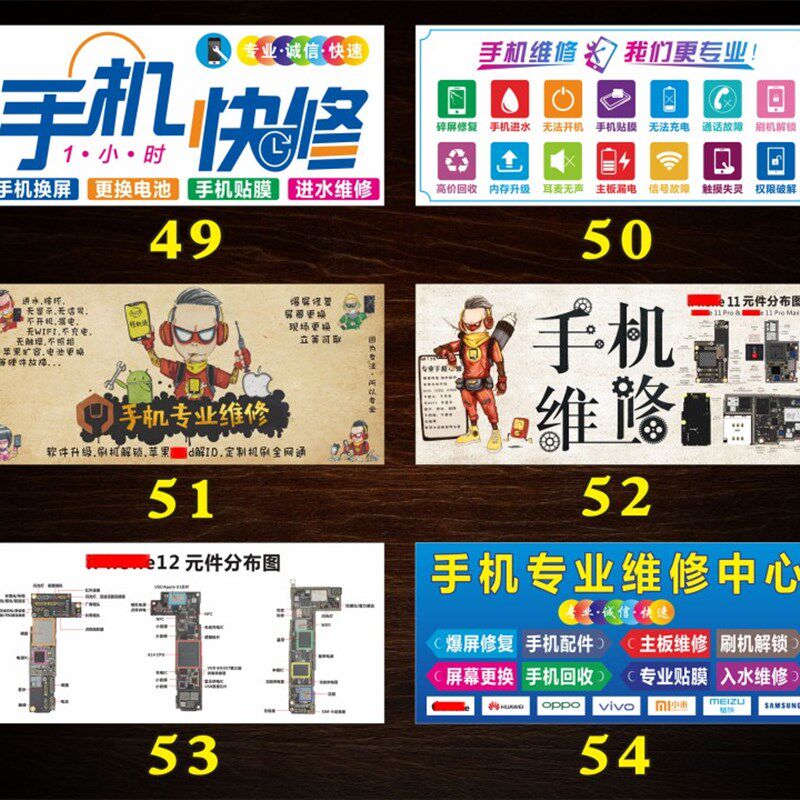 手机维修合集P手机店广告海报背景形象墙贴纸柜台装饰画背胶定制