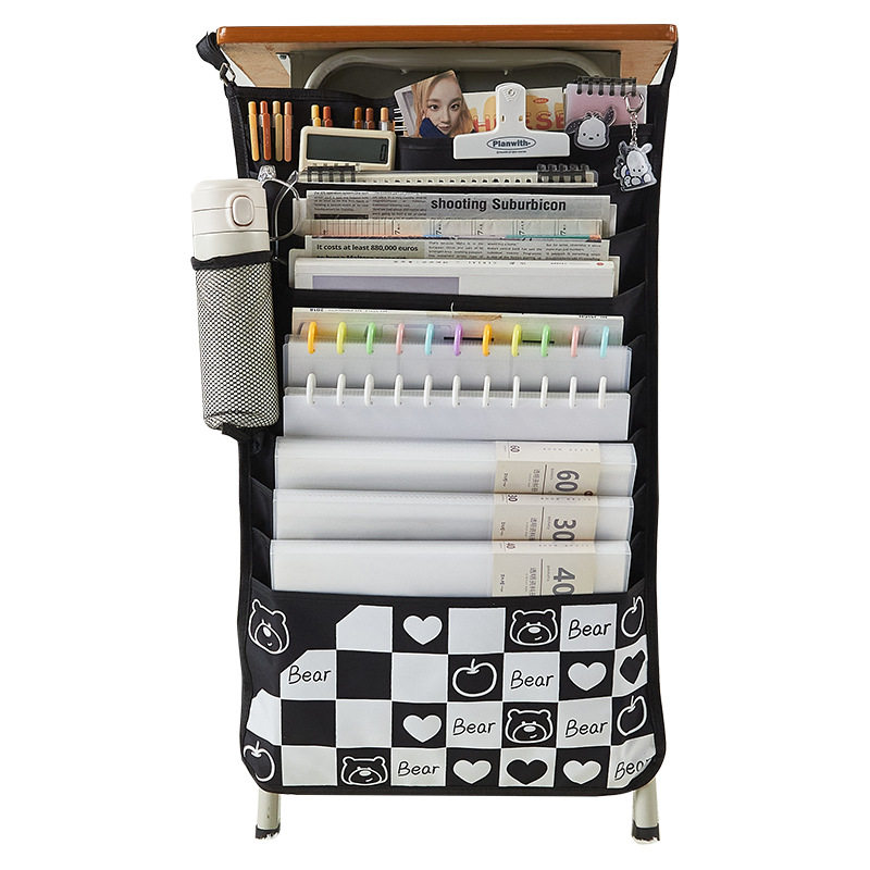 【次日达】棋盘格大容量挂书袋高中生初中生书袋课桌收纳学生桌侧收纳袋挂袋