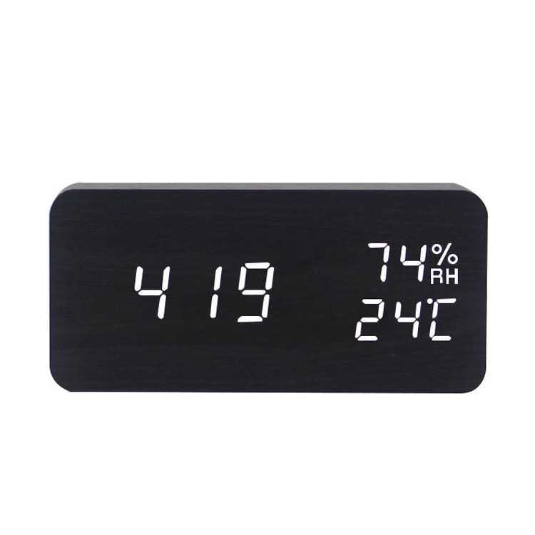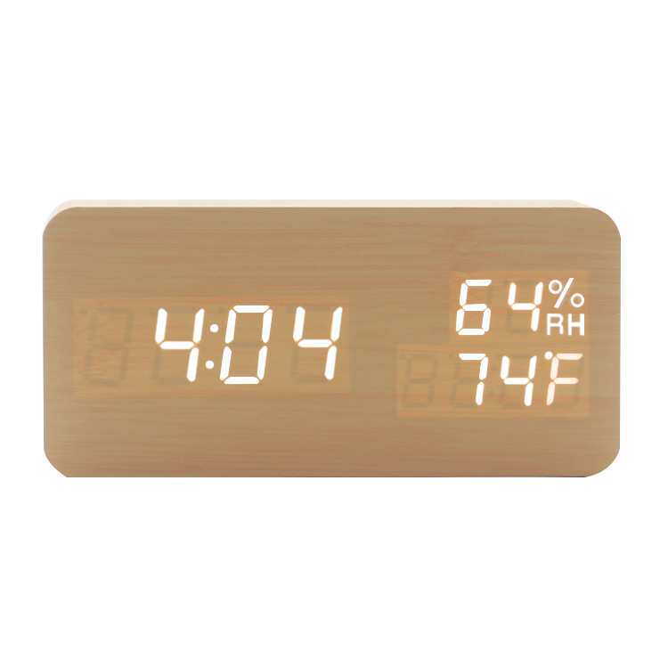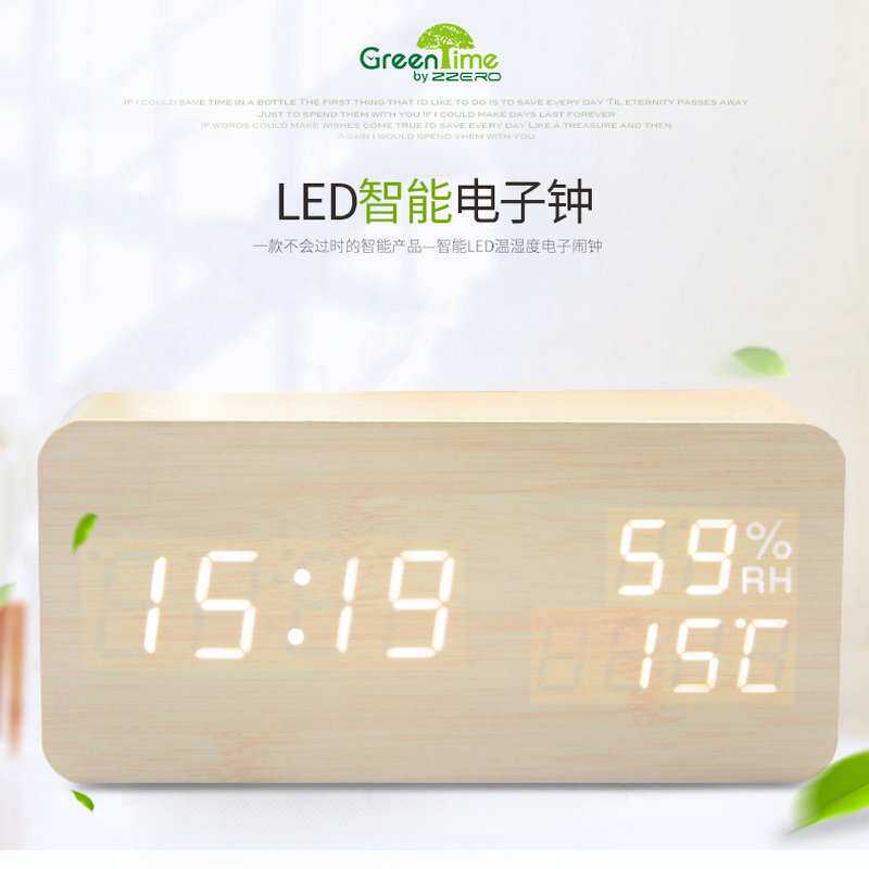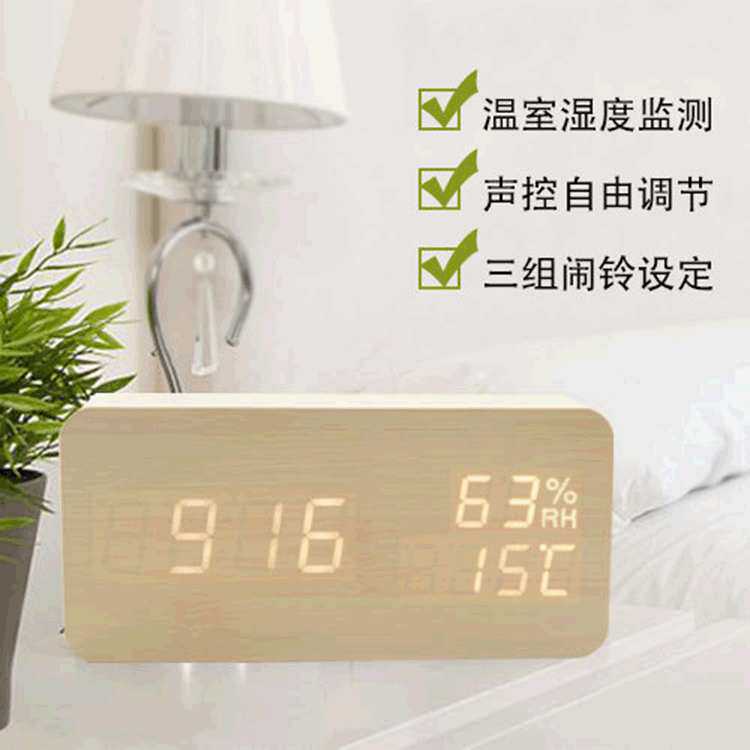厂家 新款创意电子闹钟 LED温湿度双显木头钟 时尚数字座钟