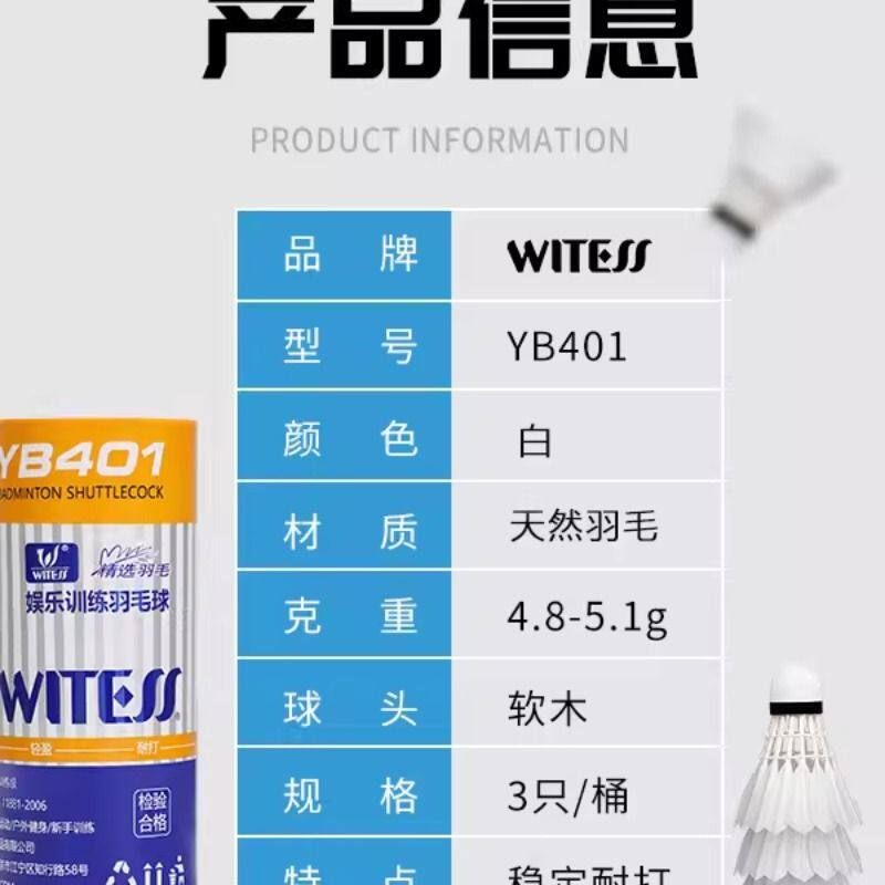 WITESS目击者羽毛球耐打3只装不易打烂耐打王鸭毛球训练球YA401