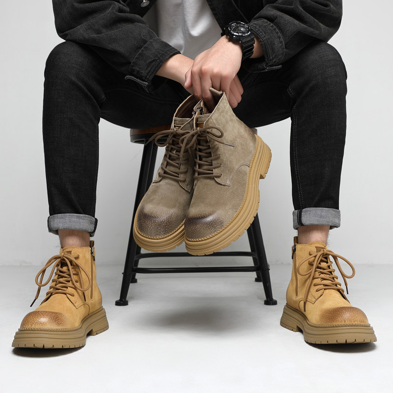 【王俊凯同款】骆驼马丁靴男鞋冬2025新款男生增高加绒户外大黄靴
