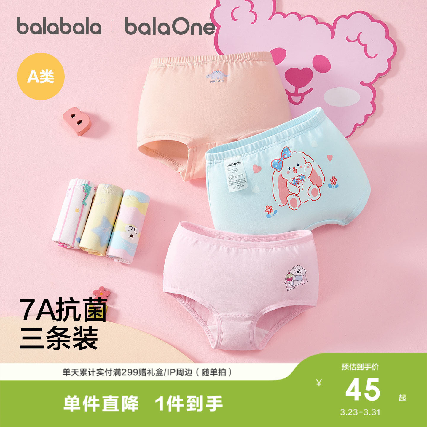 巴拉巴拉女童内裤棉平角儿童三角短裤小大童宝宝不夹PP四角三条装