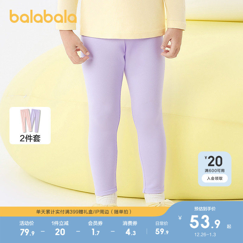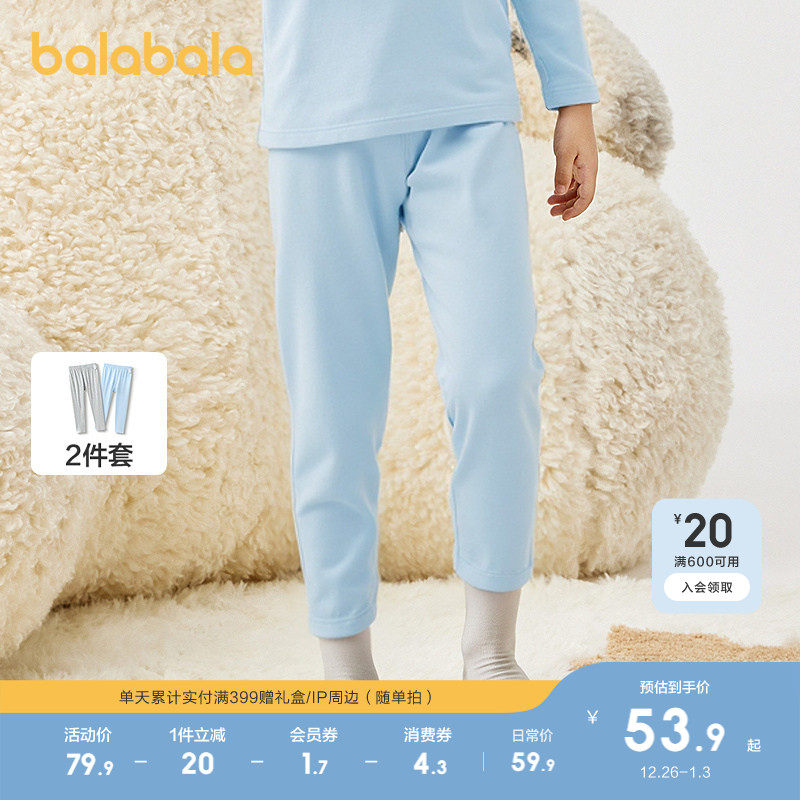 巴拉巴拉男女保暖裤秋季儿童秋裤打底裤小童中大童睡裤纯棉两条装