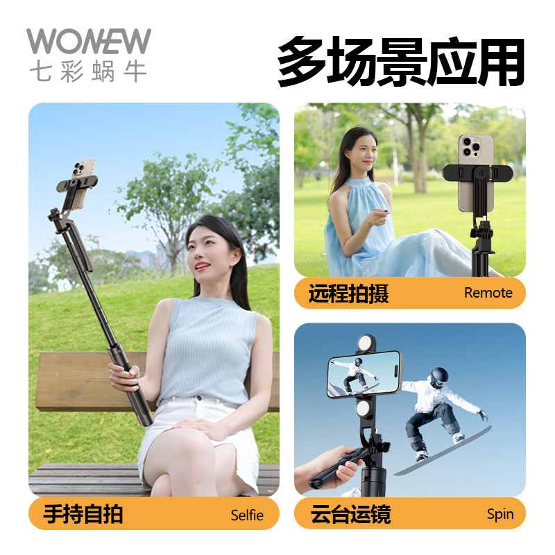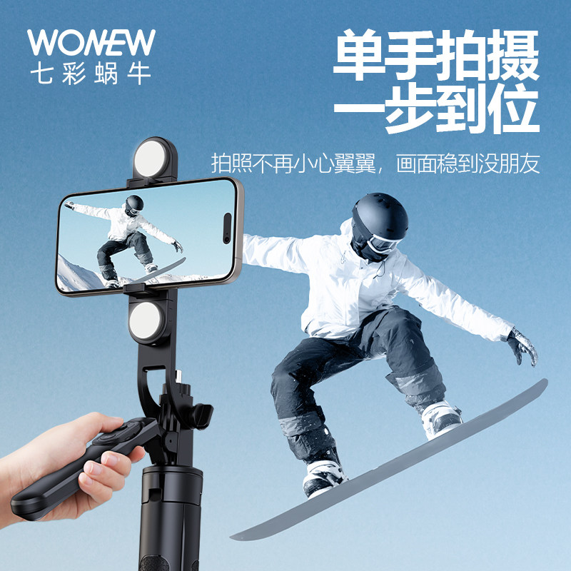 wonew七彩蜗牛手机支架自拍杆落地三脚架补光灯云台运镜拍摄防抖防风超稳旅游蓝牙遥控直播专用2024新款落地