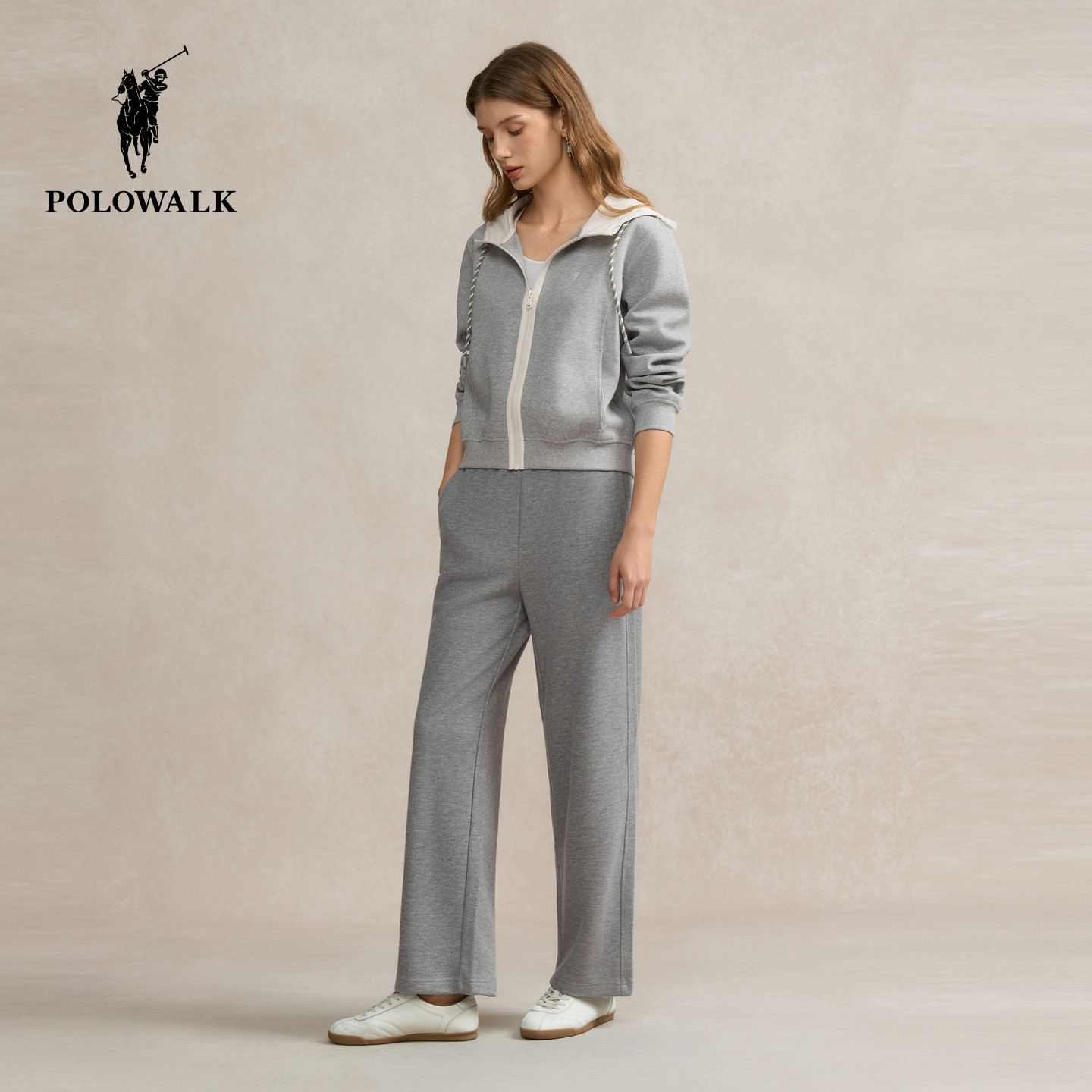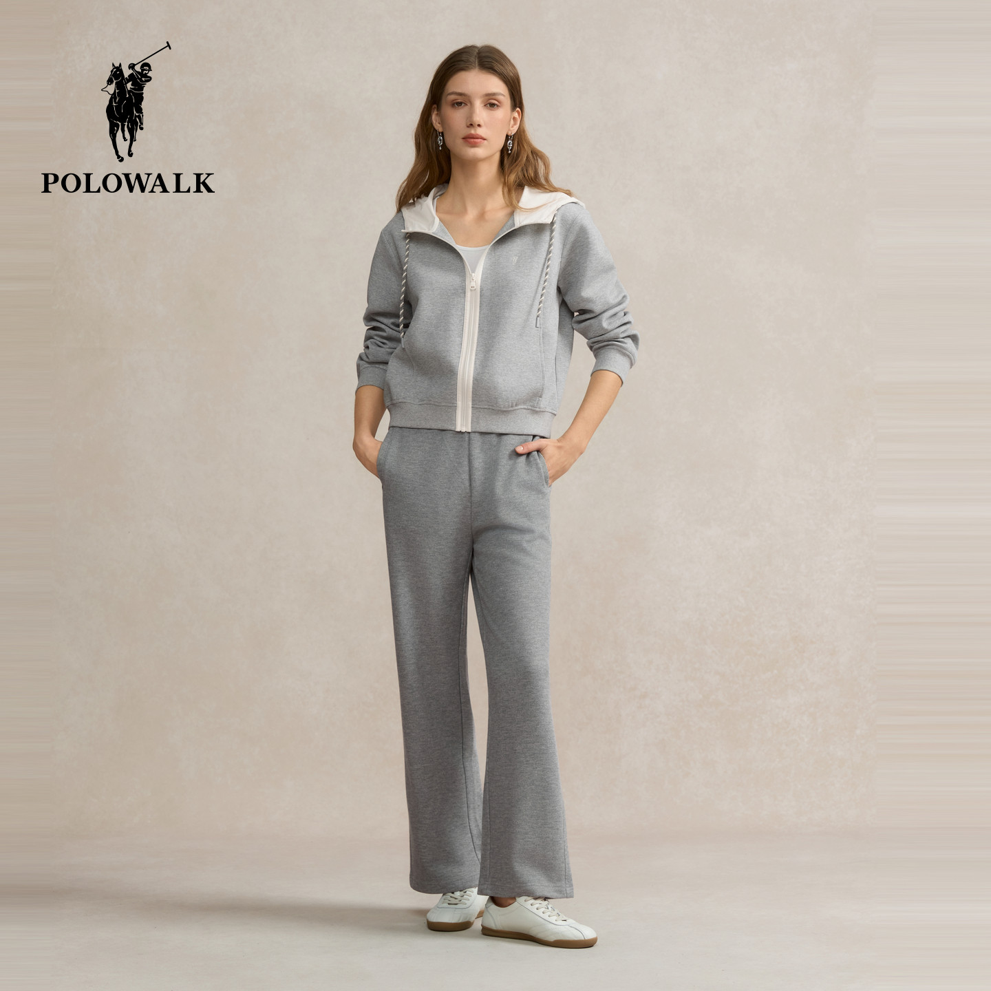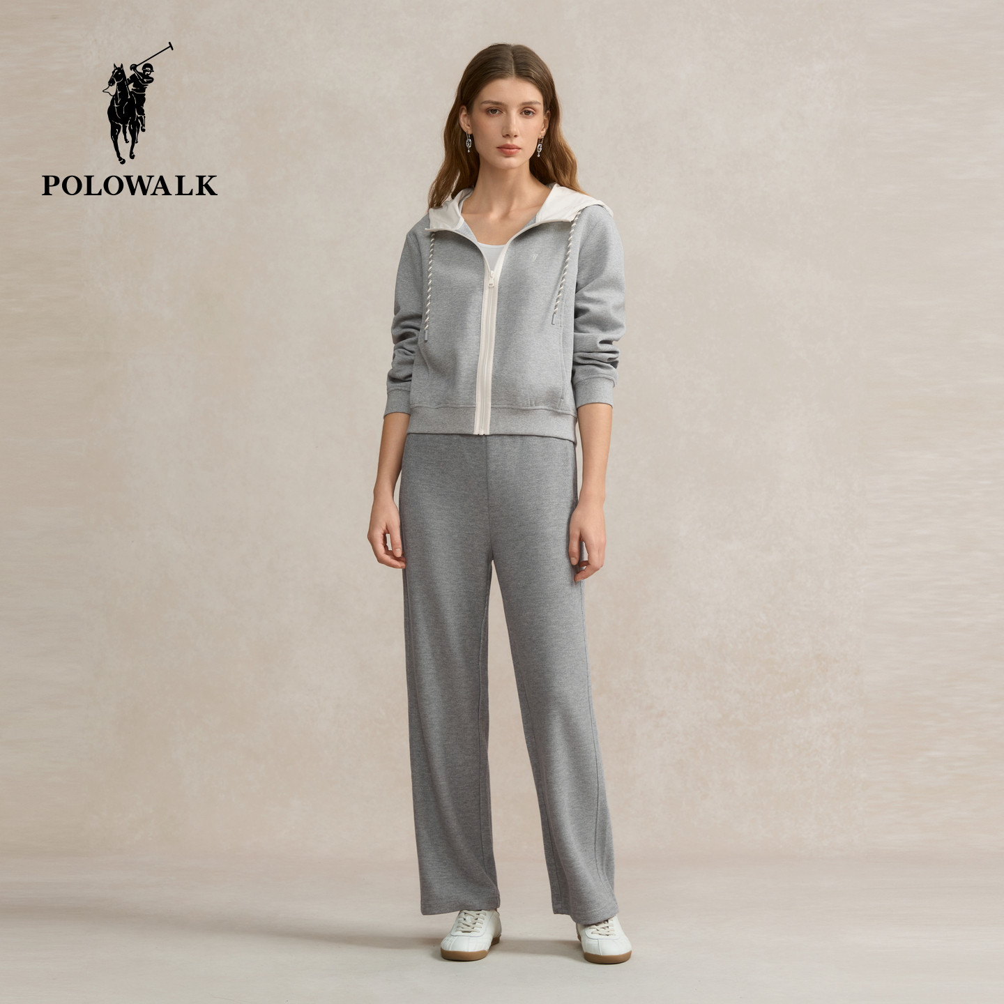 POLOWALK女装2025秋季新品女式卫衣基础百搭运动风拉链门襟外套女