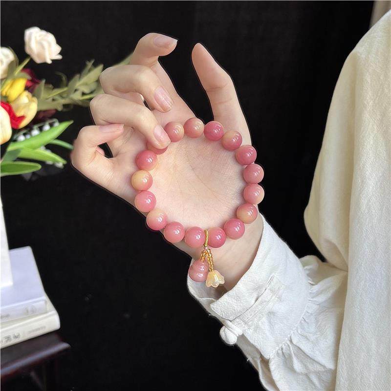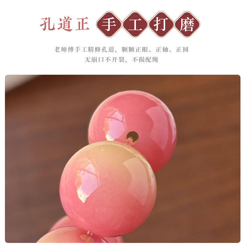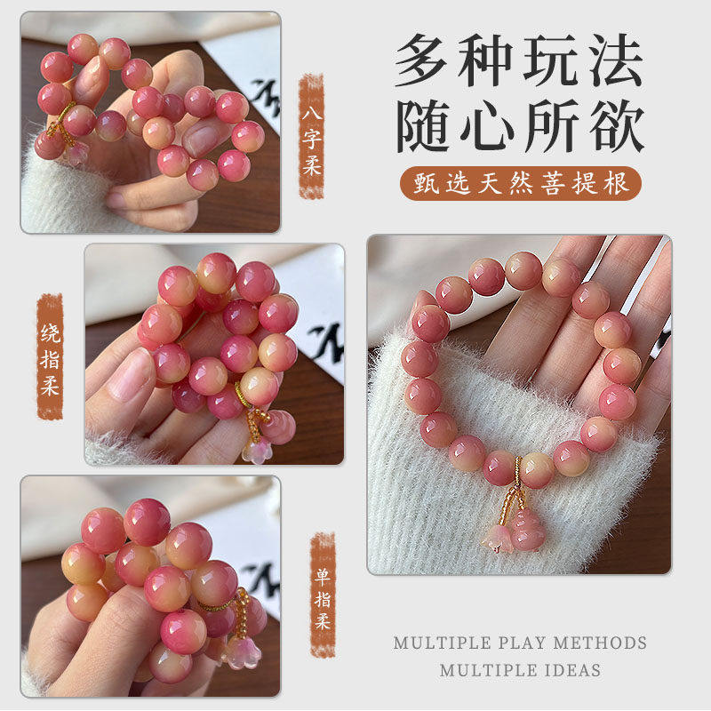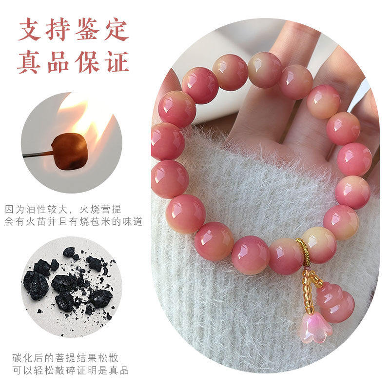 粉色飘花菩提根单圈文玩手串女款盘玩葫芦念珠手持绕指柔佛珠手链